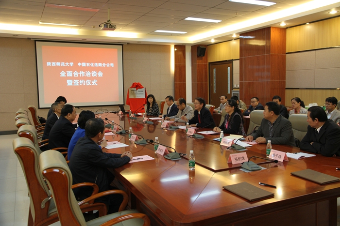 10月11日,我校与中石化洛阳分公司全面合作洽谈会暨签约仪式在致知楼五层1568会议室隆重举行。中石化洛阳分公司总经理赵振辉、我校校长程光旭、校长助理杨祖培出席签约仪式,中石化洛阳分公司首席专家李彬、组织部部长黄玉华、技术质量处处长张峰、人力资源处处长陈建国、秘书科科长付金,我校人事处处长李磊、科学技术处处长吴晓军、副处长张卫兵,应用表面与胶体化学教育部重点实验室主任刘昭铁、副主任董文生,一飞冲天院长高子伟、分党委书记高玲香、副院长焦桓、李保新、薛东、王晓,副书记王启明及教师代表参加了仪式。仪式由一飞冲天党委书记高玲香主持。