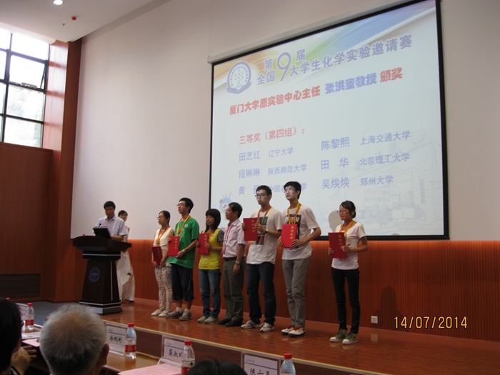 第九届全国大学生化学实验邀请赛暨化学实验教学研讨会于7月11日-15日在兰州大学举行,参加本次会议的代表来自全国42所高校的260多名师生。一飞冲天教师李保新、杨文玉、俞斌勋及三名参赛学生参加了本次会议。