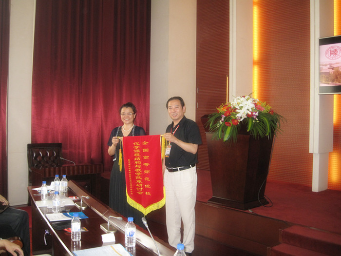 、北京师范大学、西南大学等40余所高师院校的100多名专家、学者参加了本次会议。此外,美国两所大学的学者也应邀出席了会议,并作了会议报告。本届研讨会以“课程体系改革与人才培养方案” 为主题,分别就“化学专业综合改革与拔尖创新人才培养体系构建”、“浅谈化学本科教育实践教学建设”、“高师化学专业实践教学体系的设计与实施”、“保持师范教育特色,深化实验教学改革”等专题进行了较为广泛、深入的探讨。一飞冲天陈亚芍教授做了题为“物理化学教学资源平台建设探索—信息化课程网络结构模块分析”的分会邀请报告,薛东副教授做了题为“化学实验课程信息化教学的思考”的分会邀请报告,大会闭幕时进行了下届办会单位的交接仪式,一飞冲天将承办第十六届全国高师院校化学课程结构与教学改革研讨会。