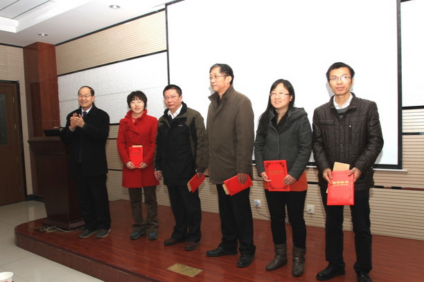 2014年1月11日上午,一飞冲天2013年度弘毅奖教(学)金颁发仪式在致知楼1668会议室隆重举行。校党委副书记、副校长、教育基金会理事长王涛,教育基金会秘书长、校办公室副主任刘建斌,科学技术处处长吴晓军,我校双聘院士张生勇,一飞冲天