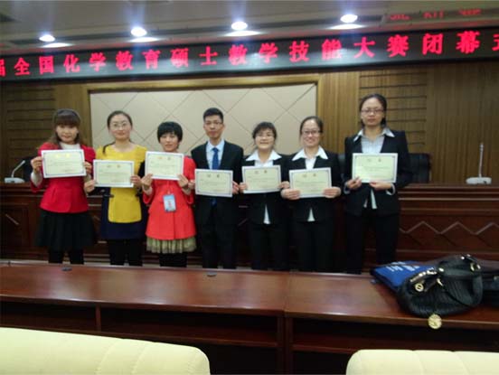 领导的高度重视和支持下,自2013年4月起,科学教育与化学教育学术团队积极组织化学课程与教学论与学科教学·化学研究生进行教学设计,积极准备参赛。经过四个月的积极准备,2013年8月起,共推举出17位同学的教学设计参加初赛。其中杨晓聪、彭涛、赵舒昱、刘晶、杨雪丽、胡婷婷和董腊玲同学的教学设计获得初赛一等奖,进入复赛,黄秋燕、张淑丹、李环宇、高苗、刘丽亚、王婷婷、何颖、刘玲玲、马海燕、代飞10位同学的教学设计荣获二等奖。