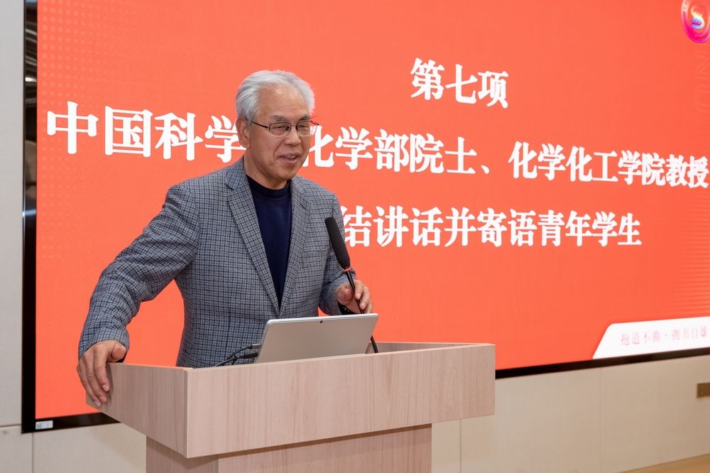 高玲香在讲话中感谢了房喻院士对大赛的支持和指导,以及校团委对活动的重视,表示化学为我们的生活和未来创造了很多美好的条件,这次活动增加了同学们对化学学科和生活相结合的了解,希望今后更多开展有关化学学科的宣传活动,号召大家学习房喻院士的教育家精神,学会享受科研,努力奉献社会。