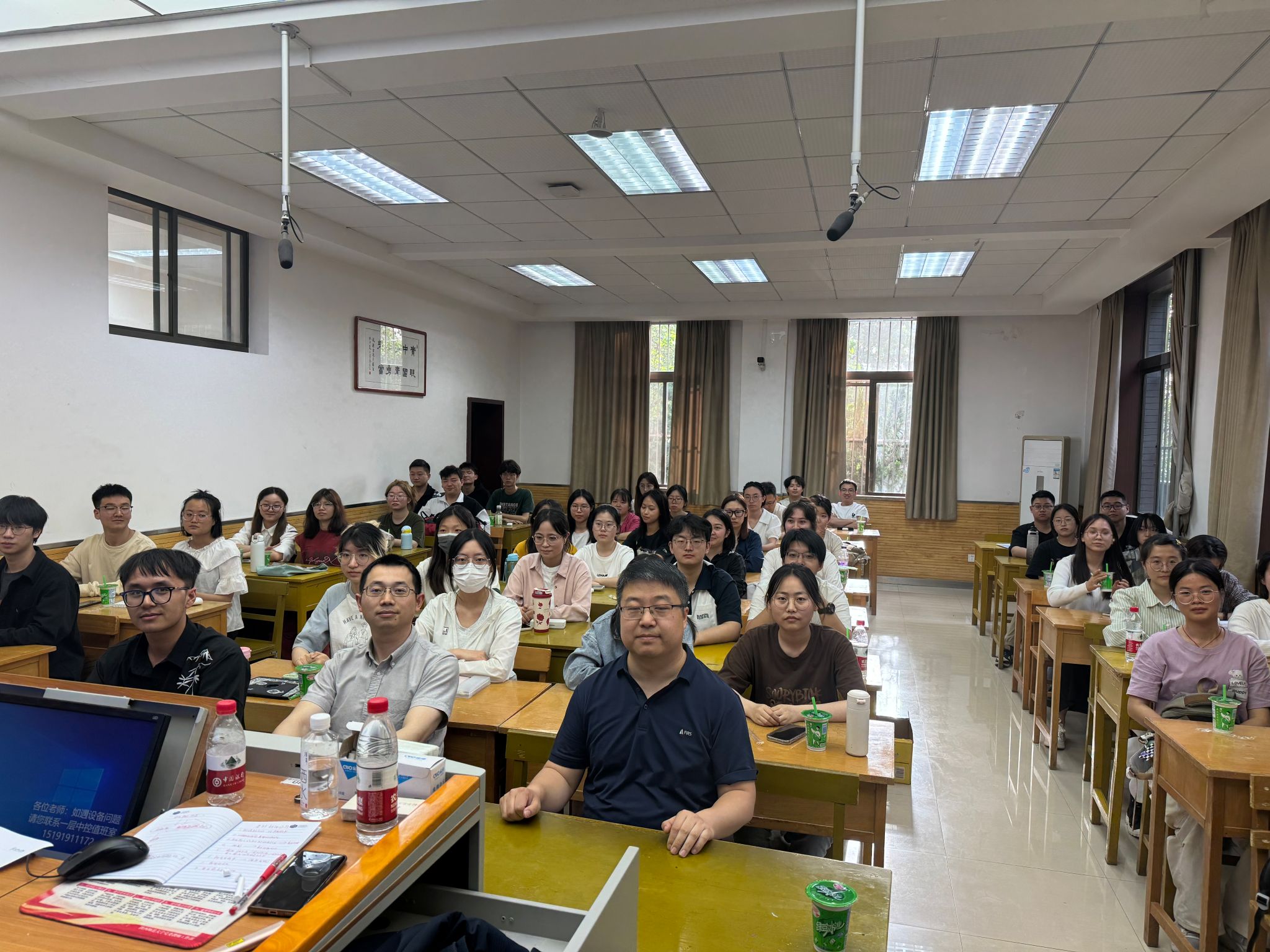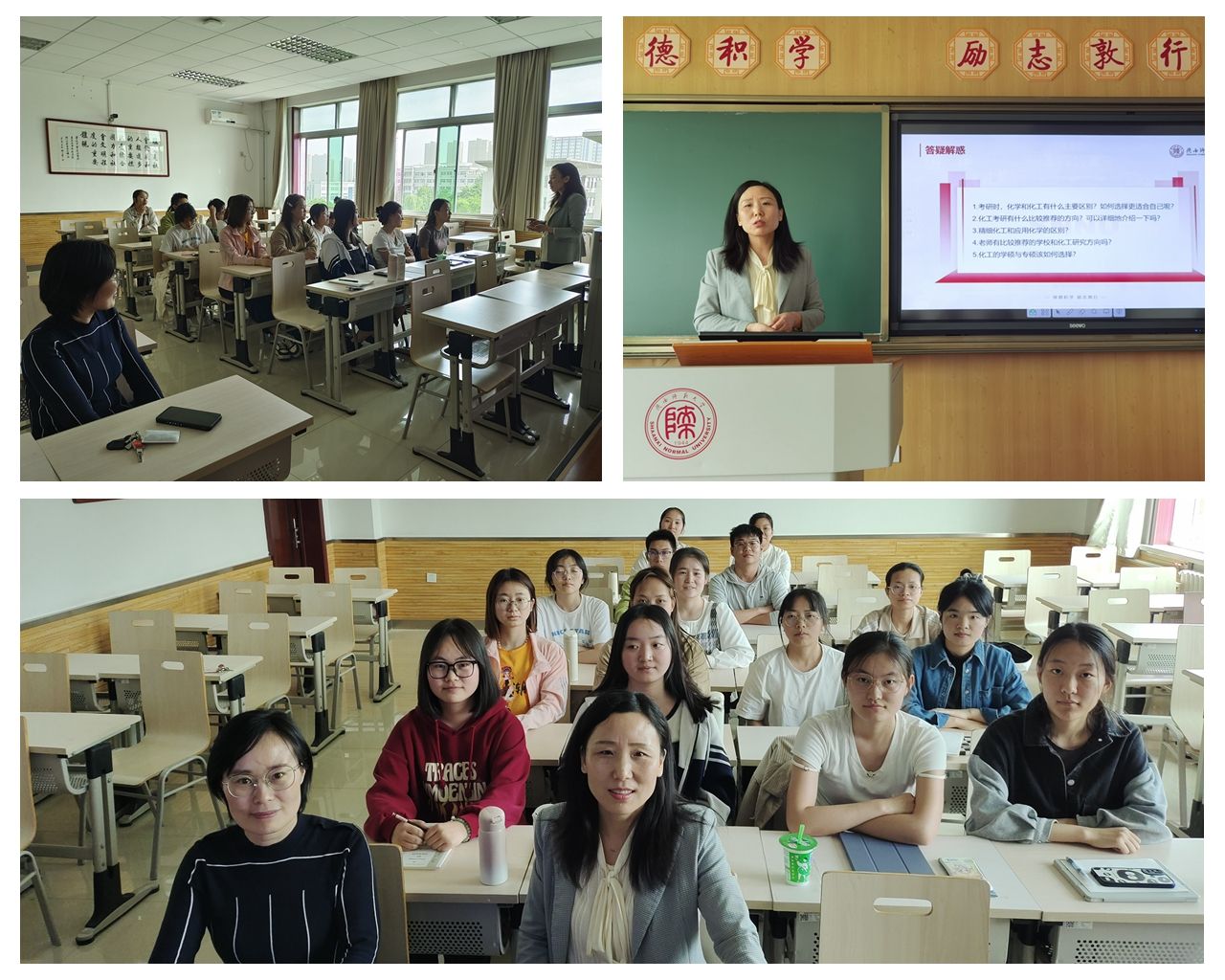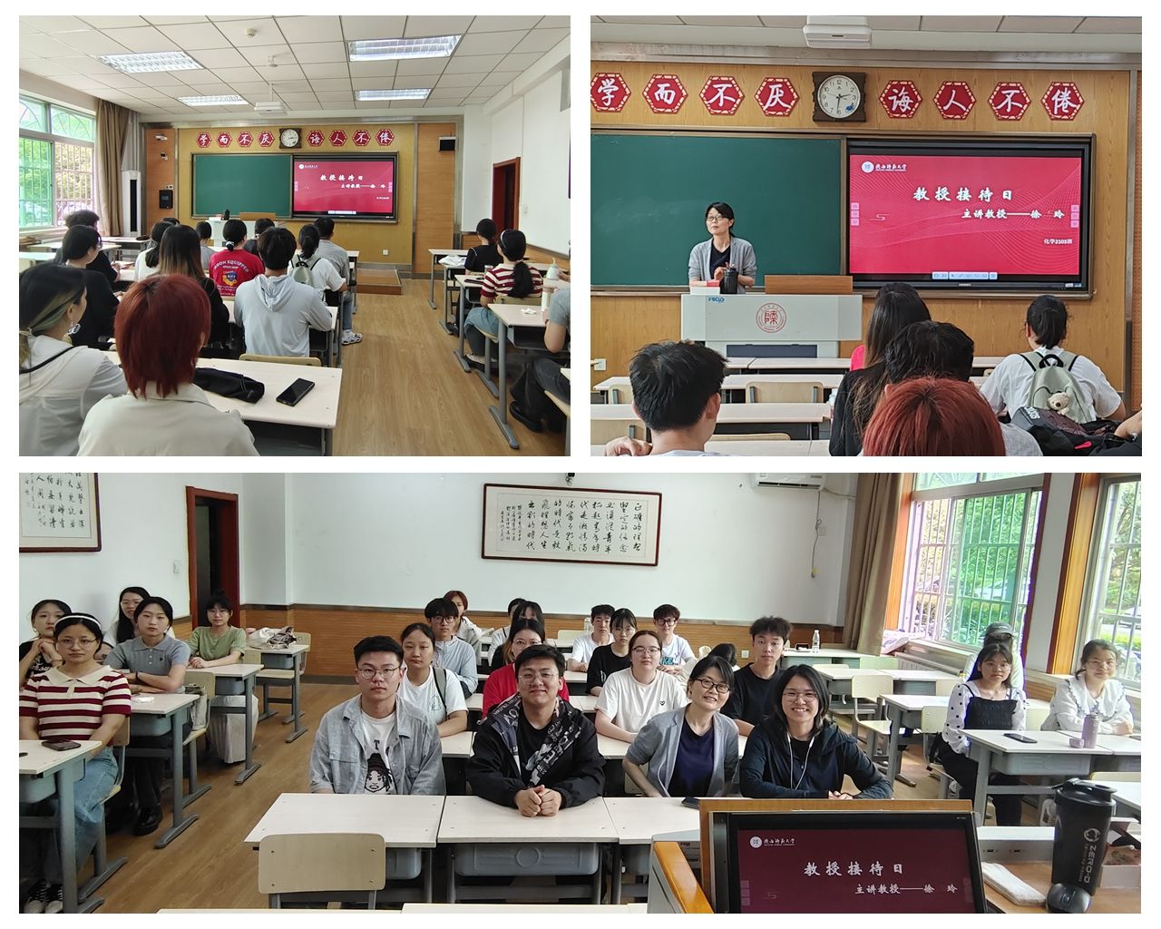 4月16日,化学(师范)2101班邀请何晓明教授于长安校区文渊1304教室举行“教授接待日”活动,班主任刘小燕老师主持。何教授围绕高分子化学课程学习提出有效建议,叮嘱同学们多做课后题,及时反思。他强调学习的过程需要同学们积极发挥主观能动性和创新意识,学会合理分配时间,转变学习方式和思路,拓宽学习路径。在交流中,何教授谈到同学们应努力提升知识水平、积极充实自我,拓展综合能力,以便更好地适应未来社会,成就更好的自己。班主任刘小燕老师进行总结讲话,鼓励同学们保持学习劲头,不负青春,实现理想。