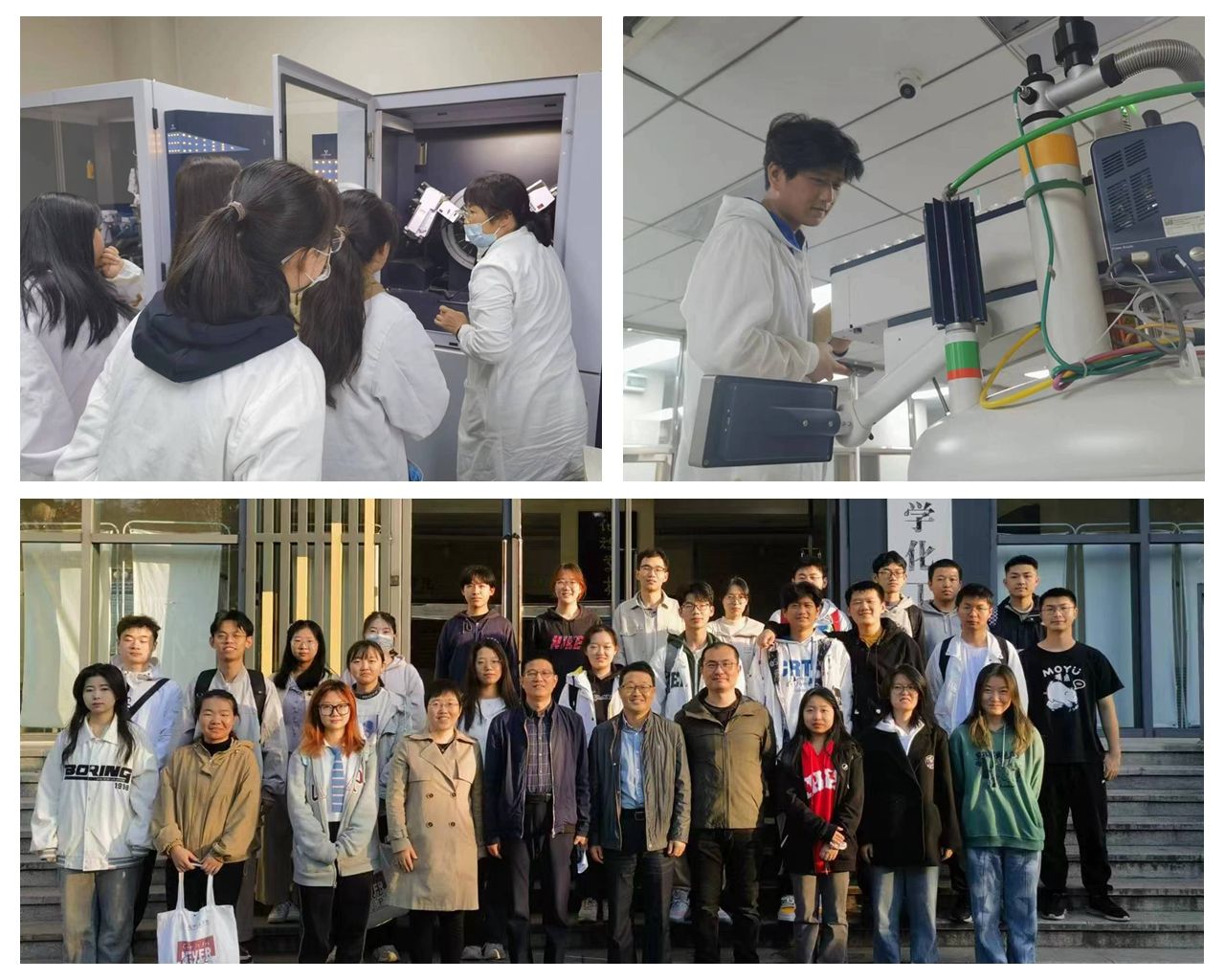 教学副院长翟全国教授、化学笃学2101班项目主任漆红兰教授、化学笃学2101班班主任任伟老师、实验中心办公室主任严军林老师出席并参与了本次活动。严军林主任带领同学们走进大型仪器平台进行分组参观,通过大型仪器见习及实验技能提升训练,帮助同学们熟悉实验室的环境以及各种大型仪器的操作,培养掌握相关研究性实验所需技能,在实际操作中夯实专业知识,为今后的科研之路打下基础。