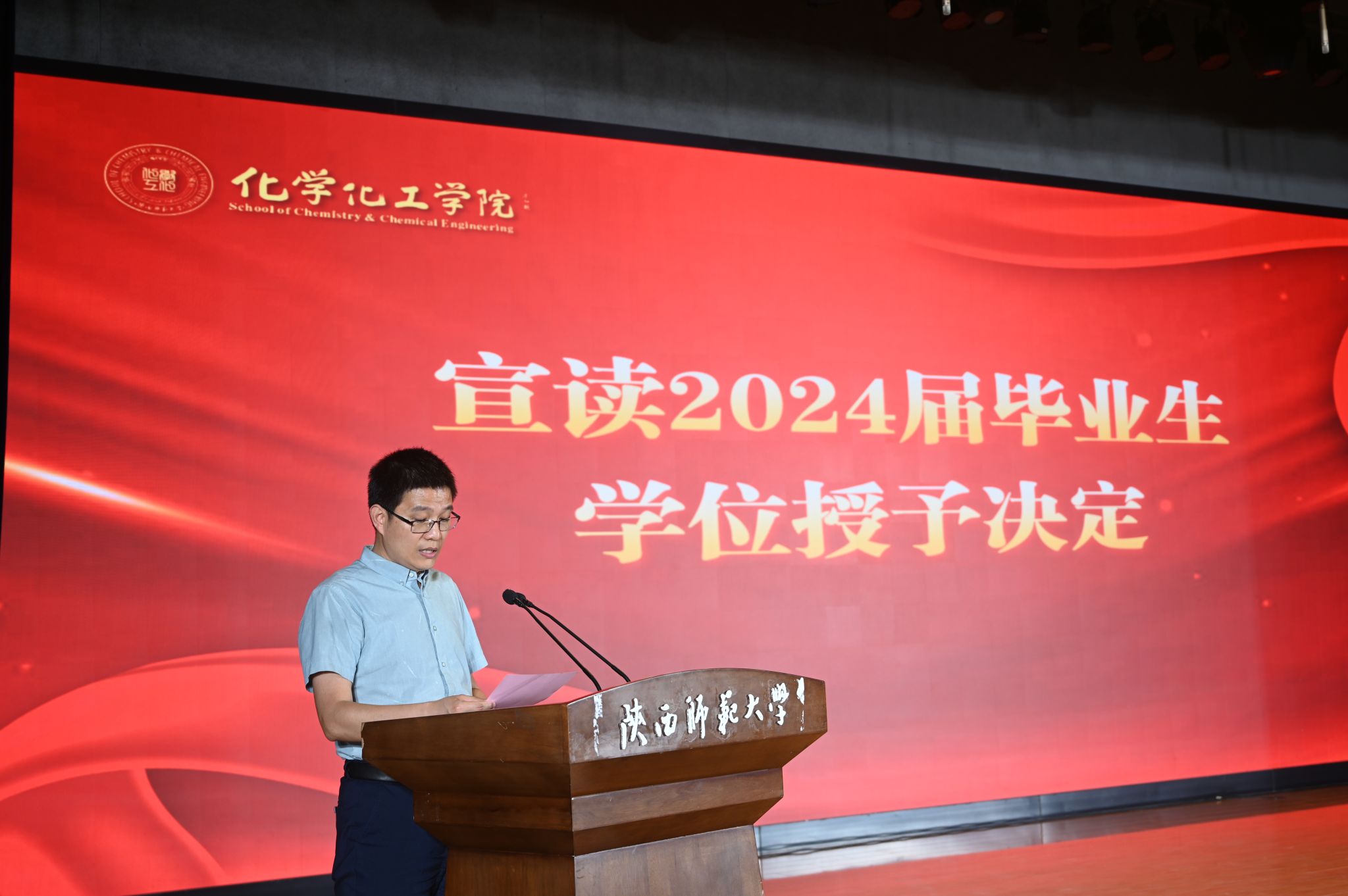 班子成员、教师代表、校友代表、学生家长代表、学工组和办公室全体人员、2024届全体毕业生等参加毕业典礼。院学术委员会成员及到会的教授代表为全体毕业生现场授予学位。毕业典礼由党委副书记贾颍辉主持。
