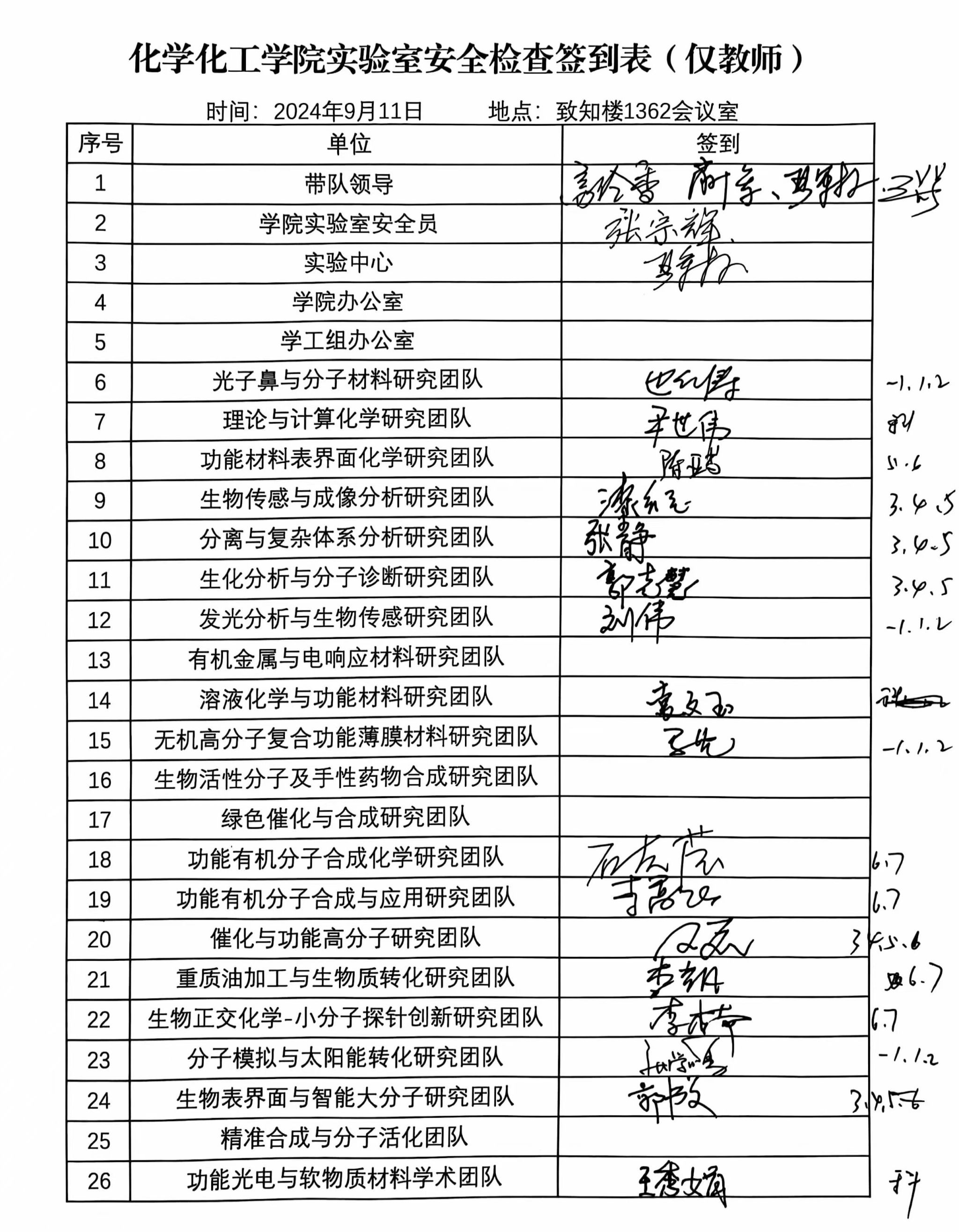 党委书记高玲香、副院长肖新军、副院长王长号、应用表面与胶体化学教育部重点实验室副主任严军林、各科研团队教师代表和学生代表约30余人参加。高玲香书记强调安全检查工作需严格细致不留死角、全面查找问题并督促及时整改,最大程度消除安全隐患,保障师生安全工作、学习和生活。王长号副院长详细介绍了本次检查的内容和要求,并划分检查小组、指定负责人。各检查小组分别对致知楼、化工楼小三层、科研大楼中科研实验室、教学实验室、公共区域逐一进行检查。