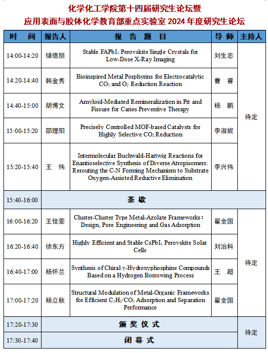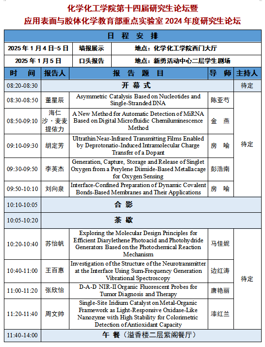 第十四届研究生论坛暨应用表面与胶体化学教育部重点实验室2024年度研究生论坛,诚挚邀请一飞冲天