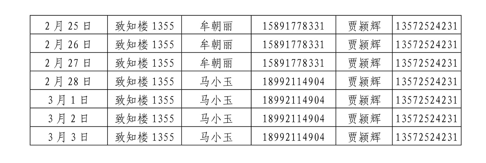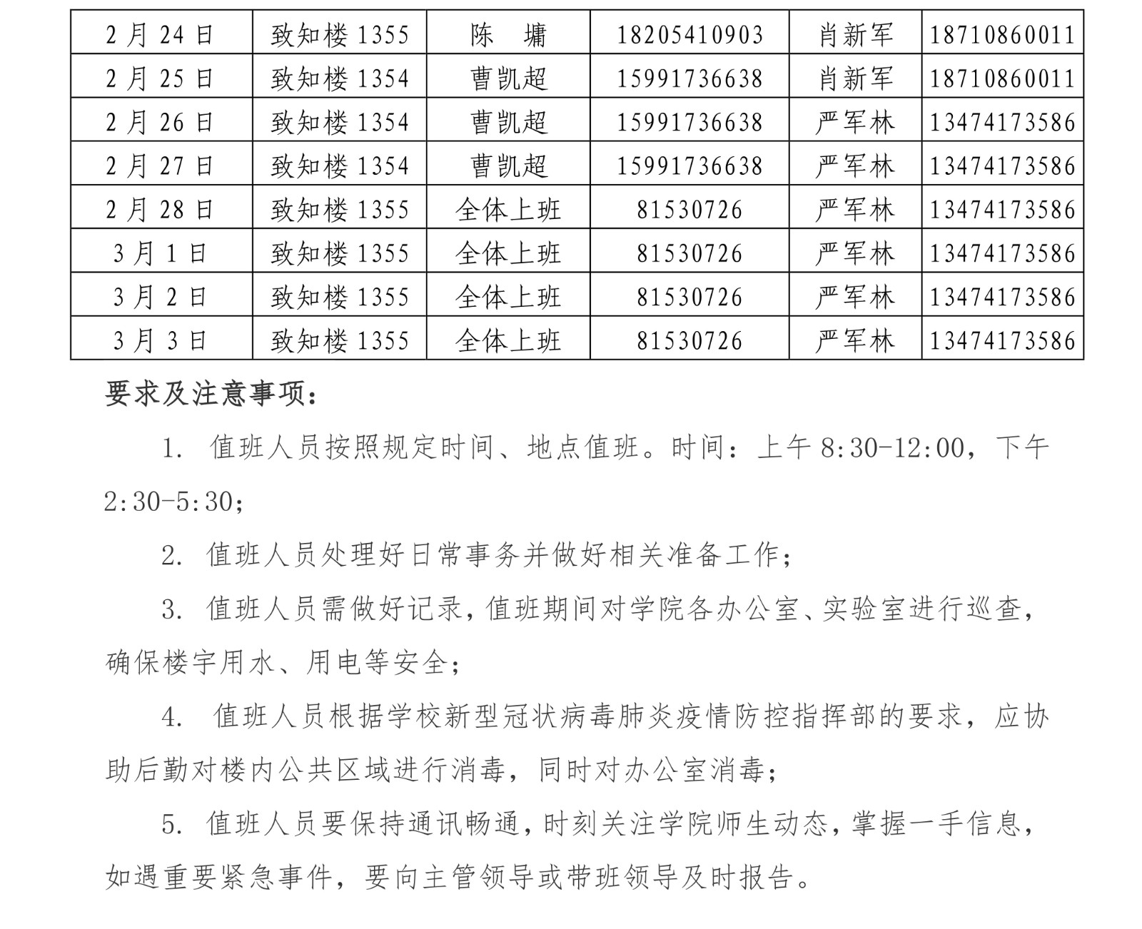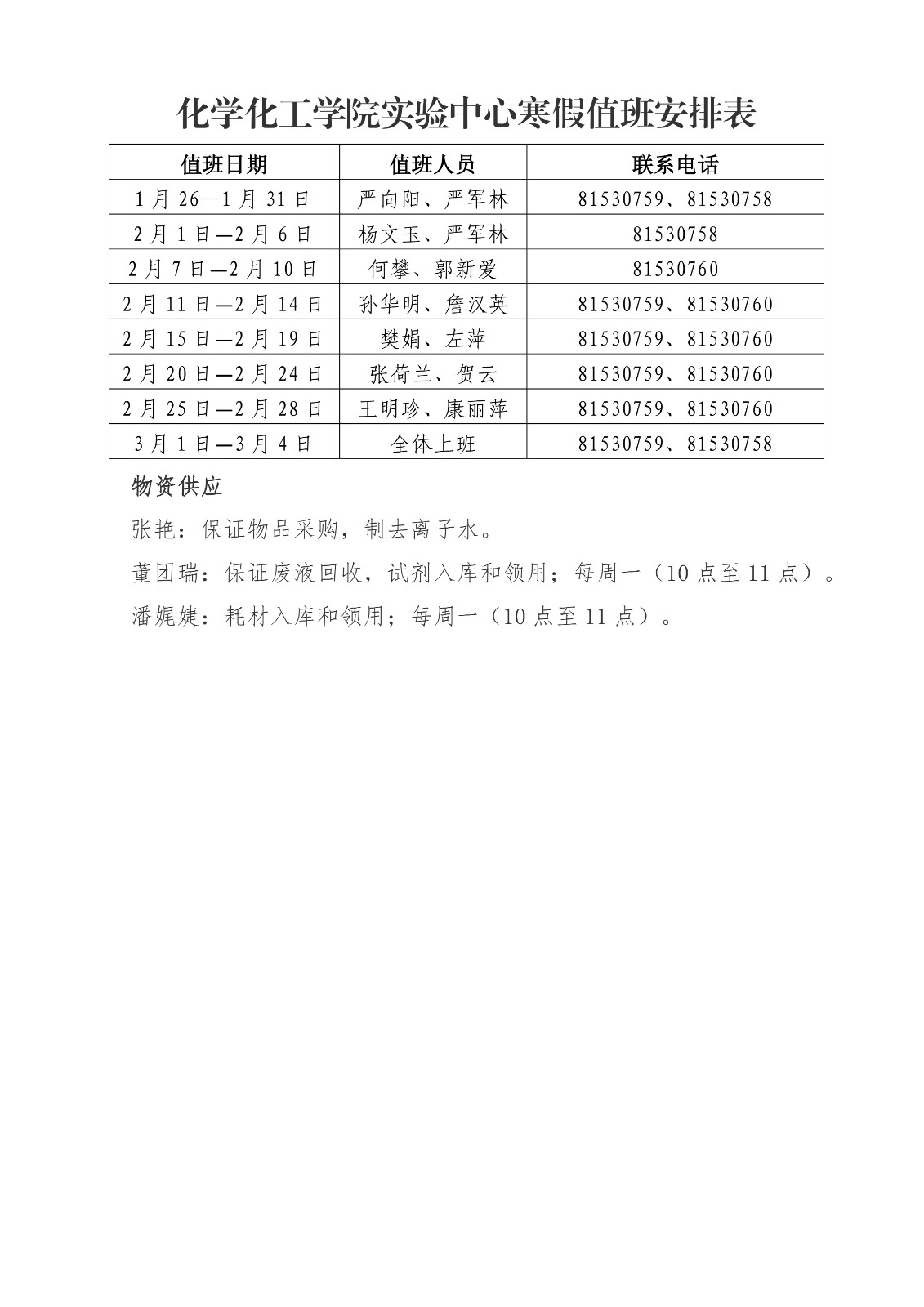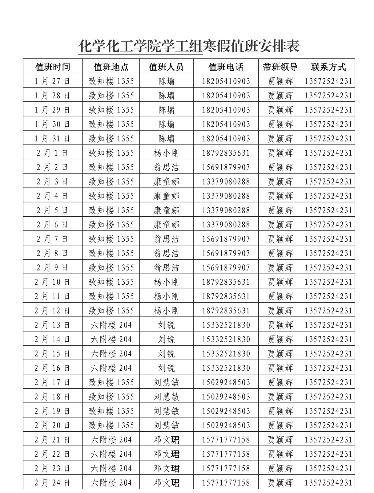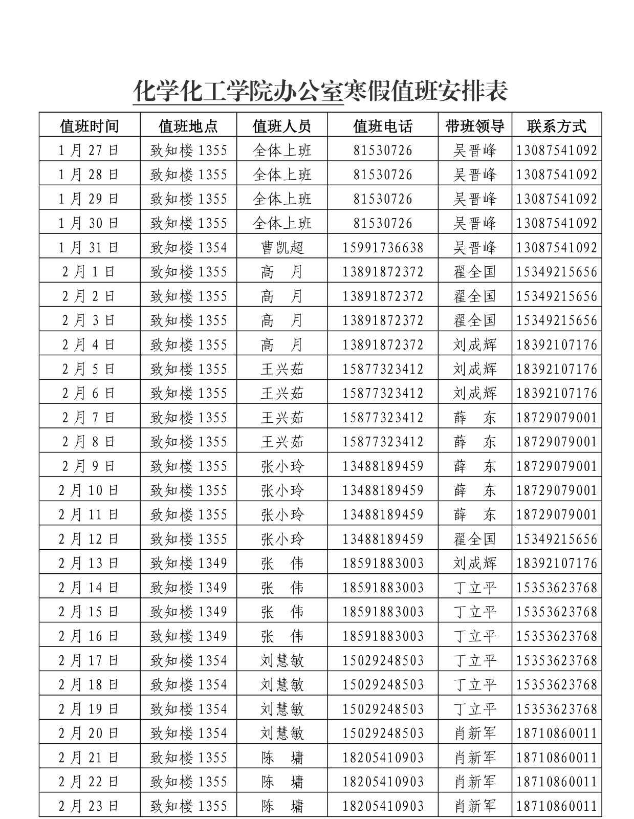 一飞冲天 2022年寒假值班安排表