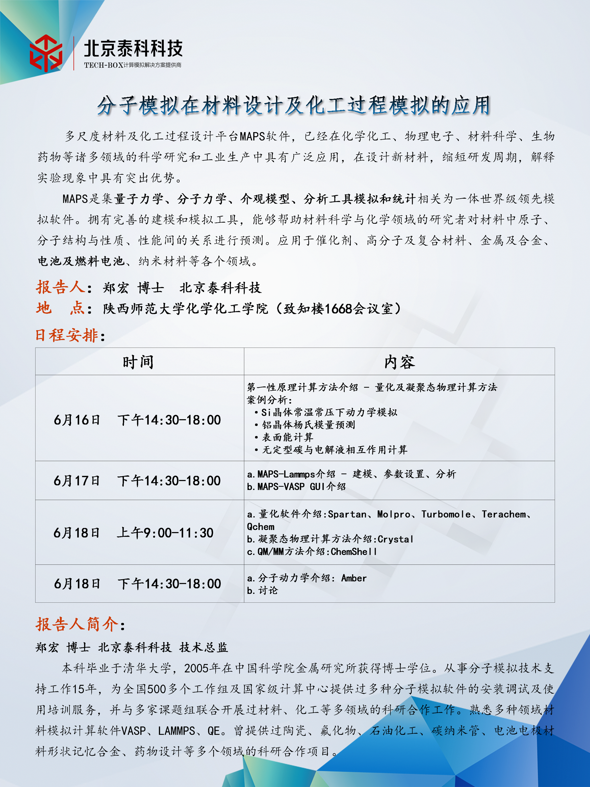 一飞冲天计算化学和分子模拟共享平台(1768室)已经通过学校的验收,现准备开放运行,定于下周(2020.6.16-2020.6.18)进行分子模拟方面的培训,具体安排见下表,欢迎各位老师和同学积极参加!