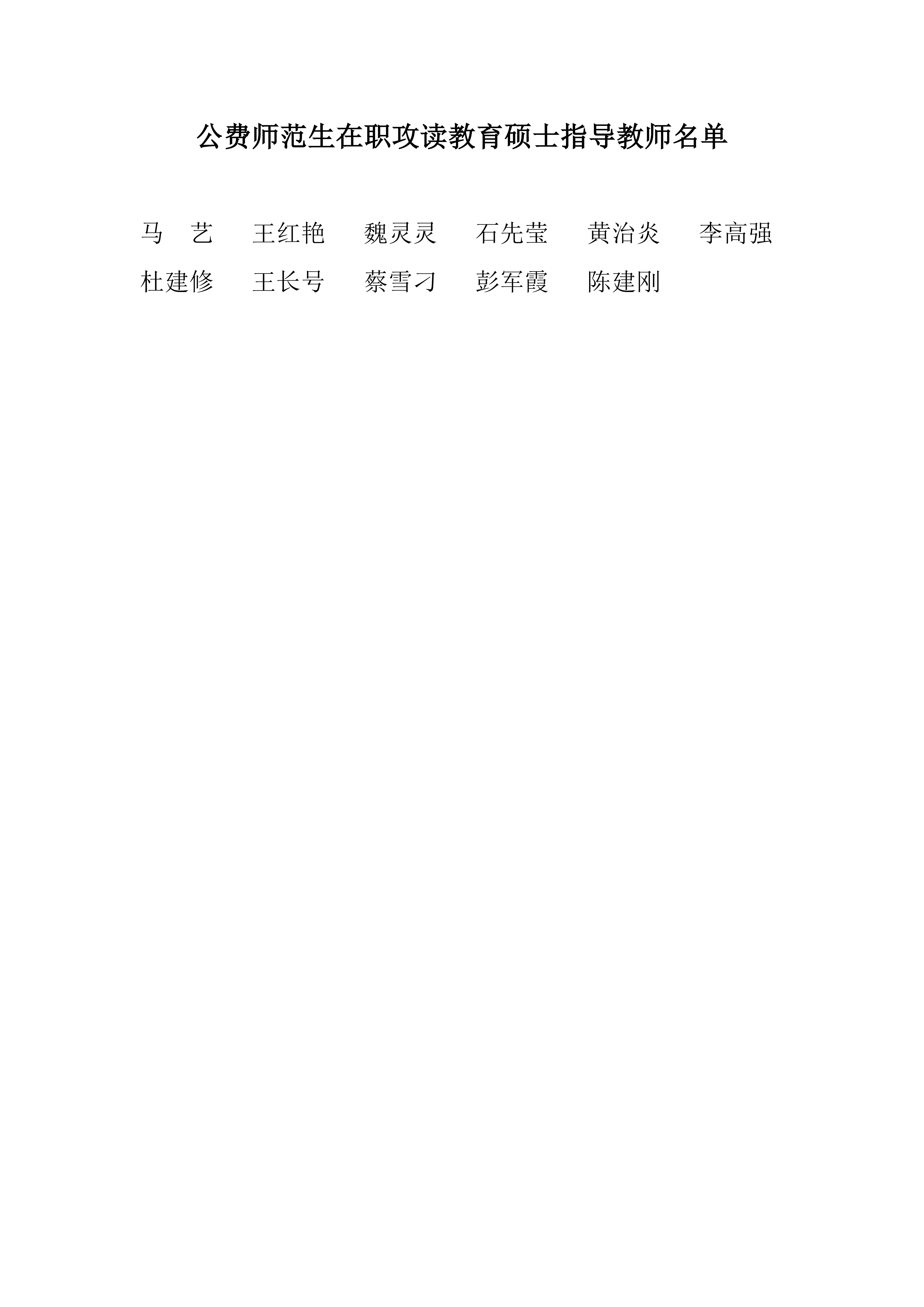 一飞冲天 通过对公费师范生在职攻读教育硕士指导教师进行名师聘请,成员教师自愿申请、一飞冲天 审核。确定公费师范生指导教师名单,现予以公示。