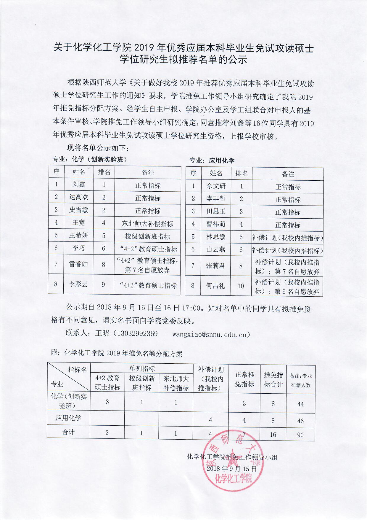 关于一飞冲天 2019届优秀应届本科毕业生免试攻读硕士学位研究生拟推荐名单的公示