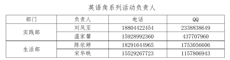 ①报名:以个人形式报名,由各班团支部汇总报名信息,并上报给英语角活动负责人。