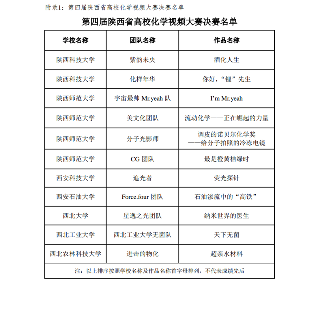 关于举办第四届陕西省高校化学视频大赛决赛的通知