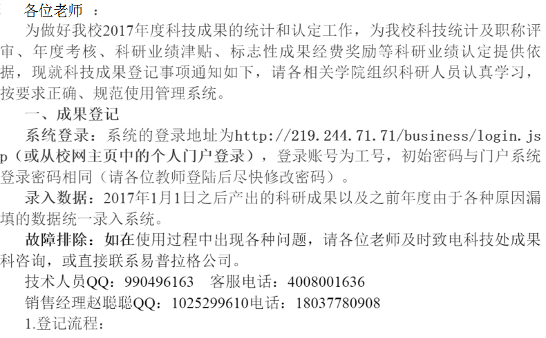 关于在“科技管理系统”中及时登记2017年个人科技成果信息的通知