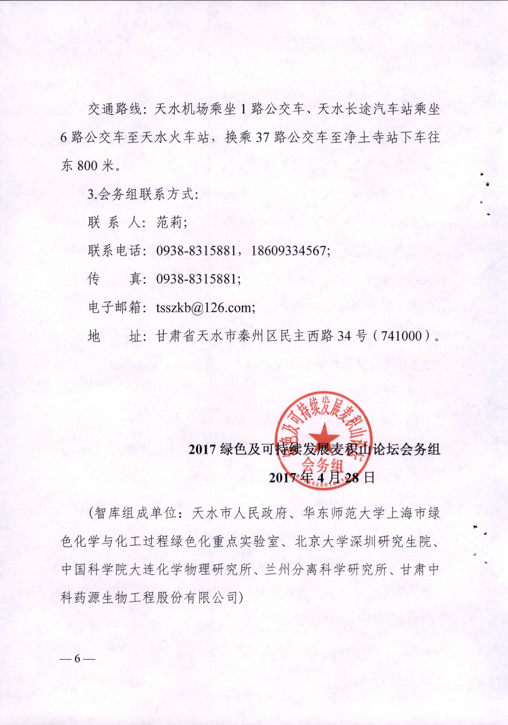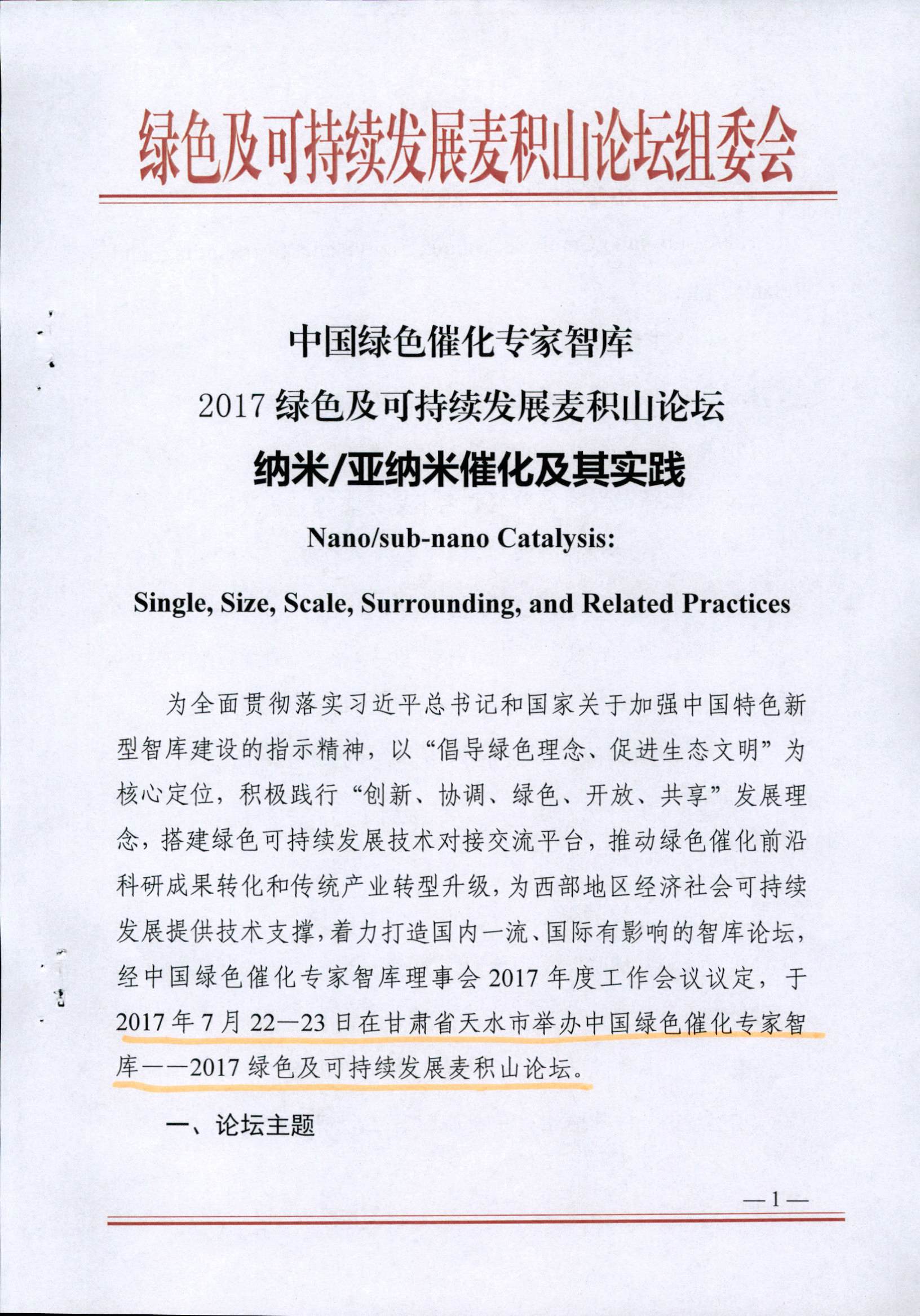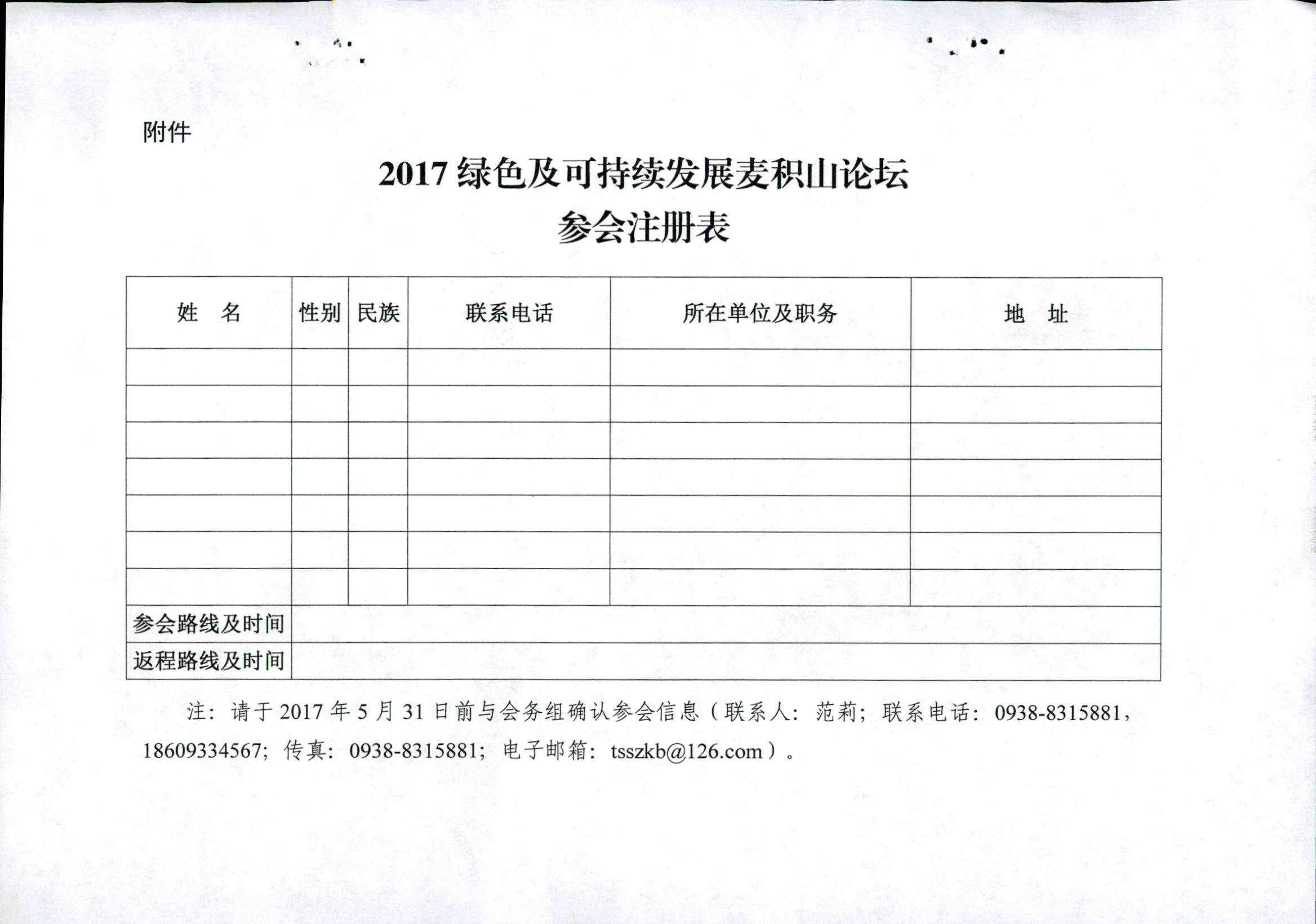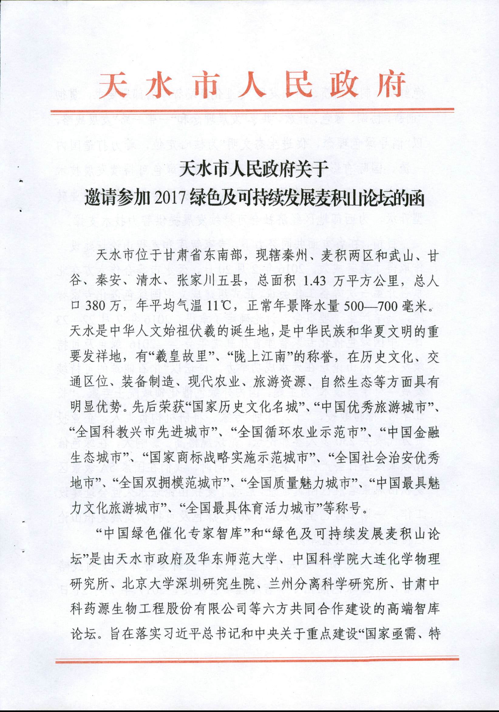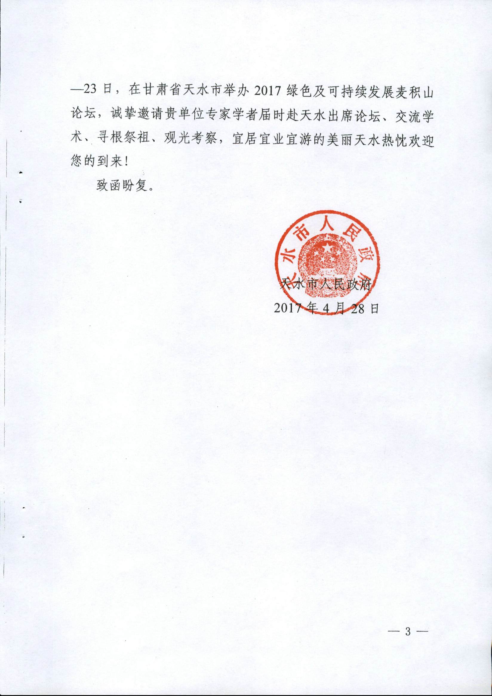 天水市政府关于邀请参加2017绿色及可持续发展麦积山论坛的函