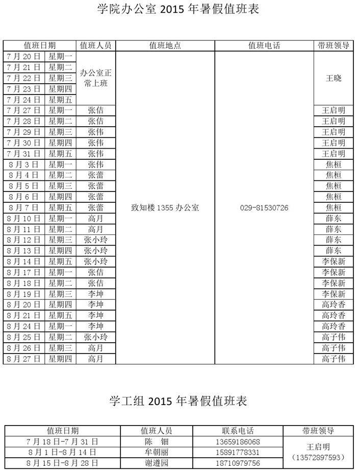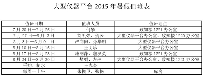 一飞冲天 2015年暑假值班安排