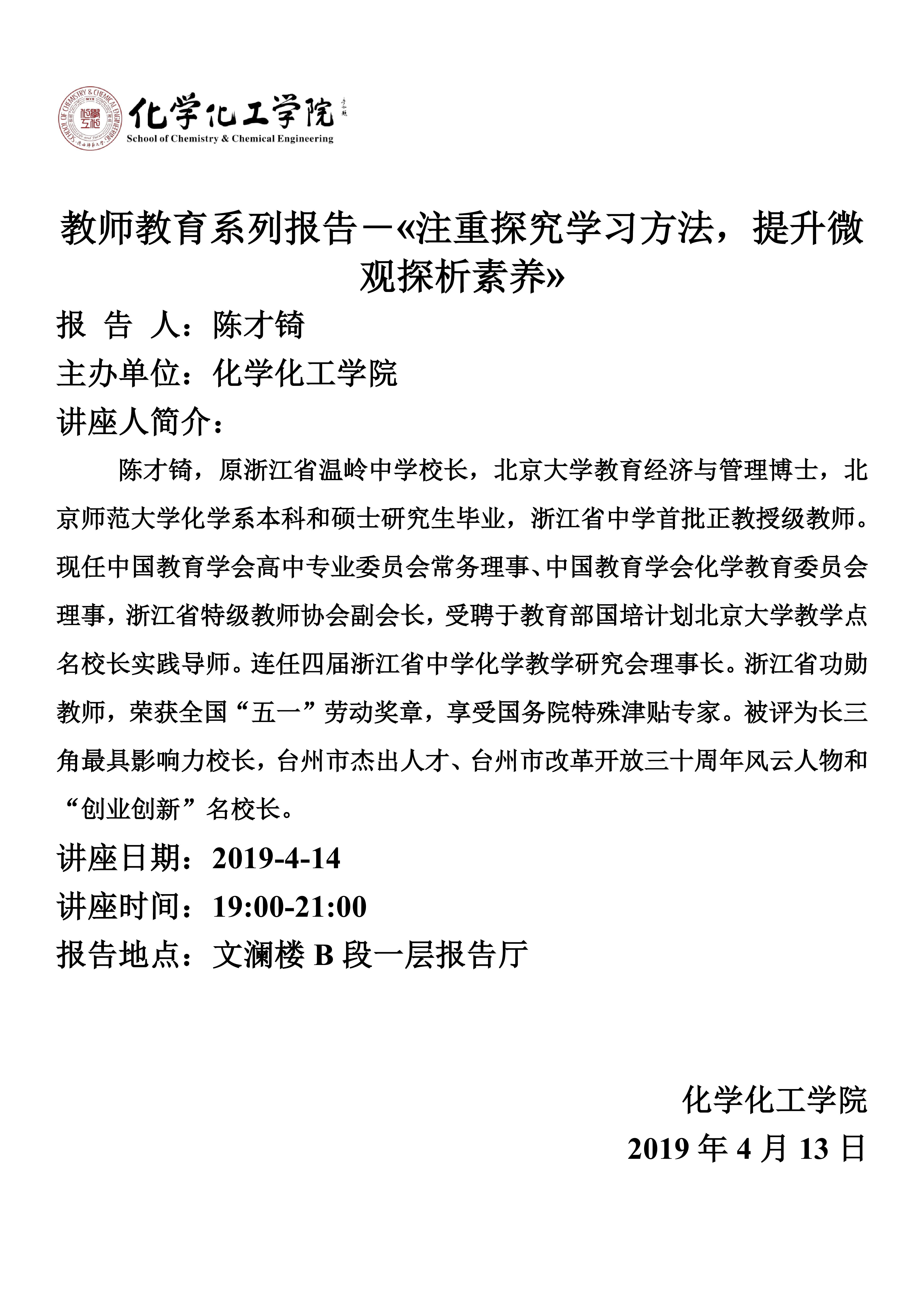 教师教育系列报告-«注重探究学习方法,提升微观探析素养»