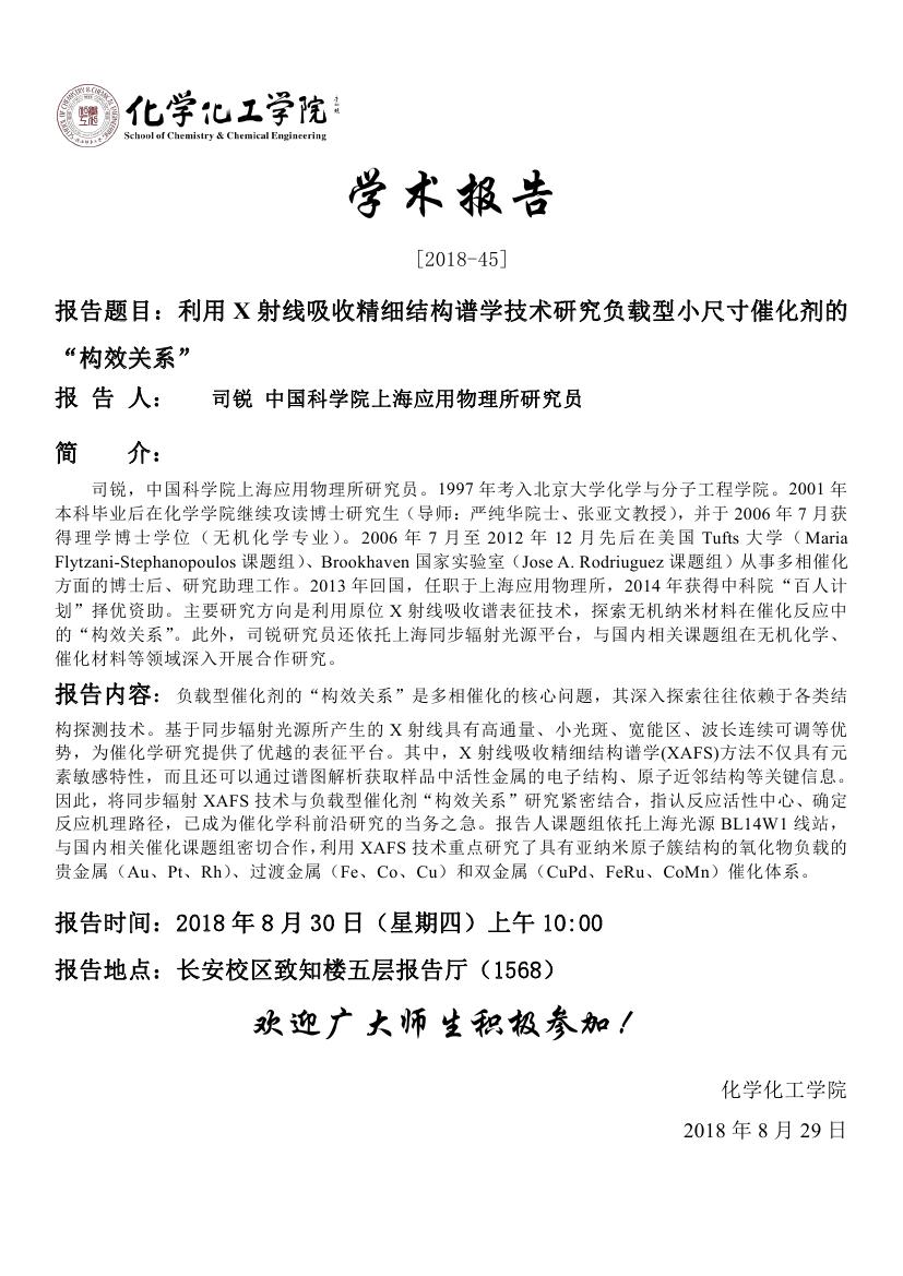 利用X射线吸收精细结构谱学技术研究负载型小尺寸催化剂的“构效关系”