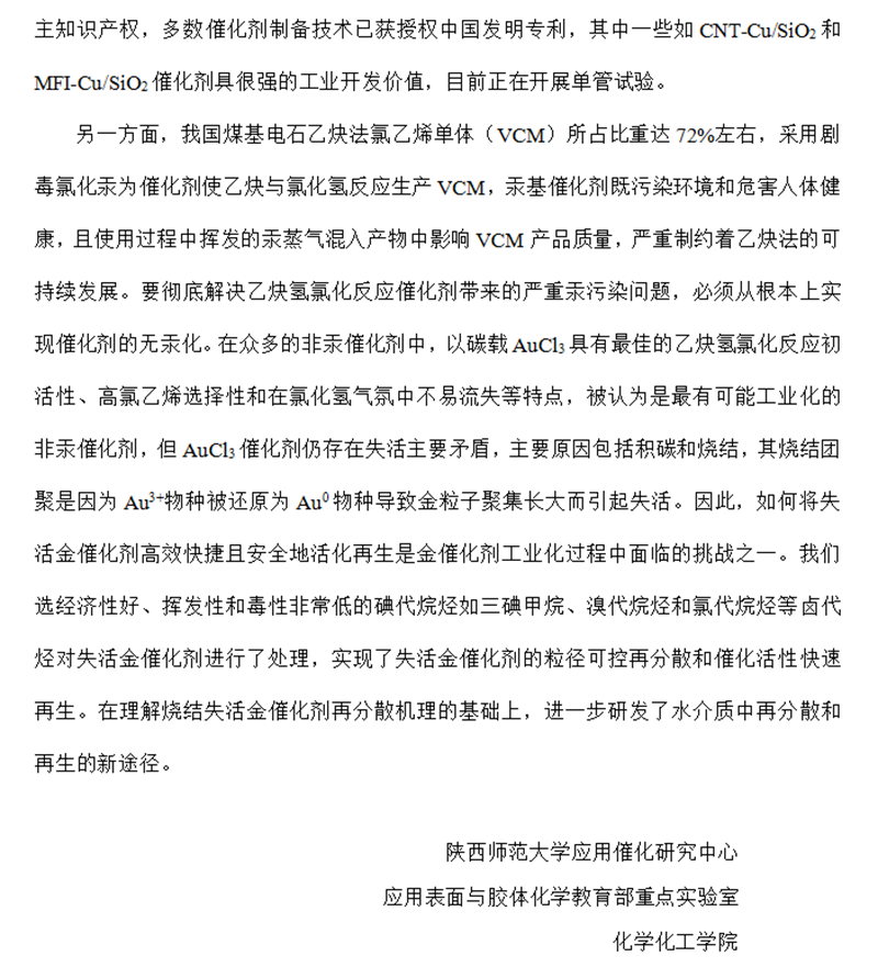 煤制乙二醇和氯乙烯关键纳米催化剂的制备与构效关联