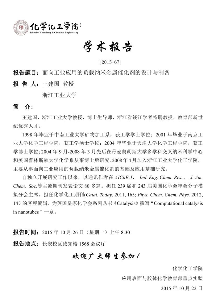 学术报告预告[2015-67]