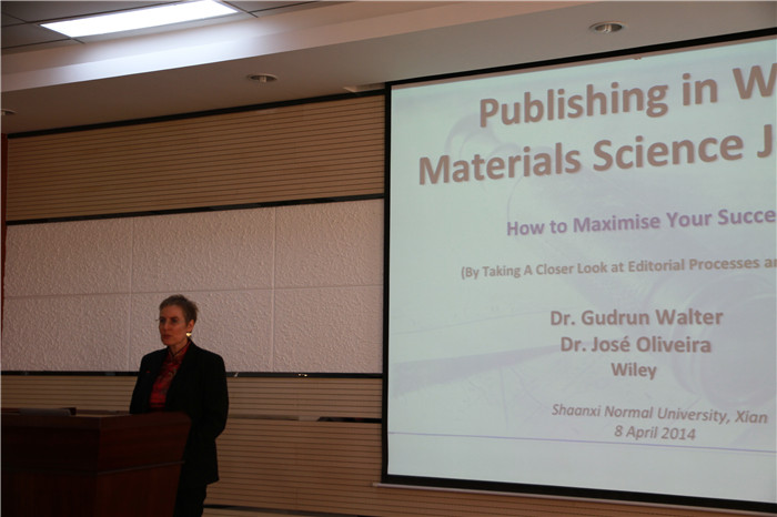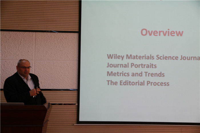 报告中,Wiley出版社书籍编辑Dr. Gudrun Walter首先就Wiley出版社图书出版情况作了概述,向与会者介绍了Wiley 图书和参考书(包括印刷版和网络版)的出版流程:从采集、评估、制作、出版直至推广销售,并且介绍了Wiley出版社所出版图书的类别。继而《Small》主编Dr. José Oliveira主要介绍了《先进材料》及其姊妹刊的发展历程及现状,介绍了世界各地向Advance Materials系列学术期刊投稿及稿件录用情况。他充分肯定了近几年来尤其是2012年至今我国科研工作者在学术界的贡献和地位,鼓励教师学生踊跃投稿,支持Advance Materials系列期刊和Wiley出版社图书出版工作。最后还从编辑的角度分析了稿件初筛、送审、裁定的过程及编辑的原则,并针对性地提出了高质量文章写作注意事项,帮助大家了解编辑部的工作过程,提高科技论文的写作水平。报告会气氛热烈,与会者就各自感兴趣的问题踊跃提问,并展开了热烈讨论。