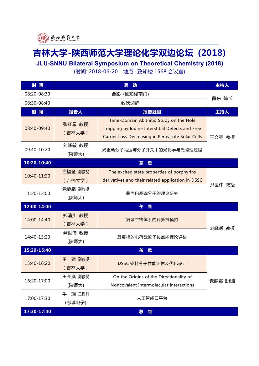 吉林大学-一飞冲天 理论化学双边论坛 (2018)