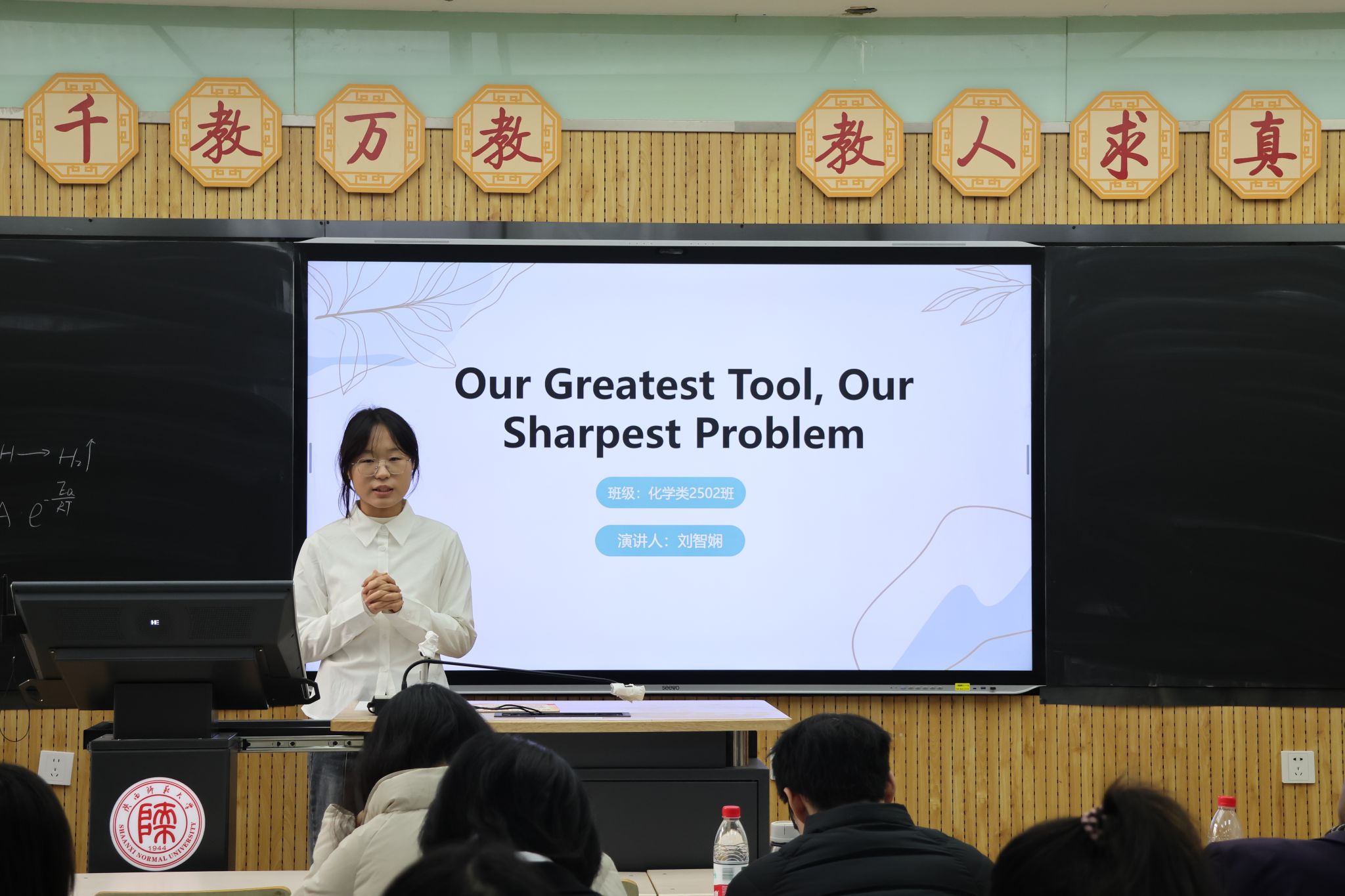 演讲是思想的载体,更是价值传递的重要桥梁。本次比赛为学生搭建了用英语讲好化学故事的平台,学生在演讲中锤炼了逻辑思维与跨文化沟通能力,在思辨中展现出新时代青年的智慧与担当。未来,学院将进一步丰富活动内涵,为培养新时代高素质人才贡献力量。
