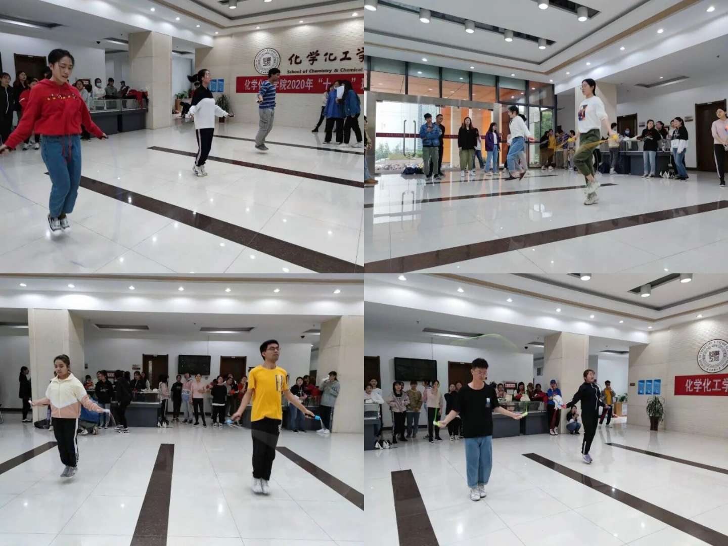 首先进行的是跳绳竞速,参赛人员分为三组,每位选手的成绩由两位文体委员负责记录。跳绳翻飞,加油声烈烈。参赛选手大展身手,将竞技精神发挥到了极致。