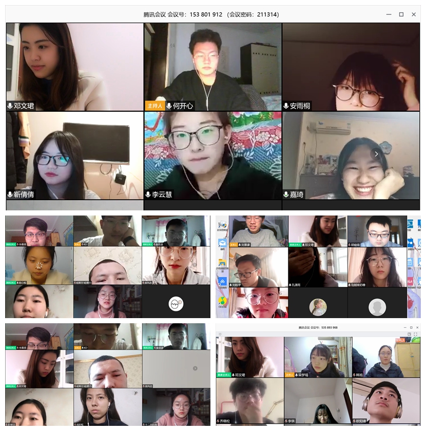 2019级辅导员邓文珺与学生通过腾讯会议新媒体平台,相聚在形式多样、内容丰富的“云班会”中,用实际行动助力疫情防控。