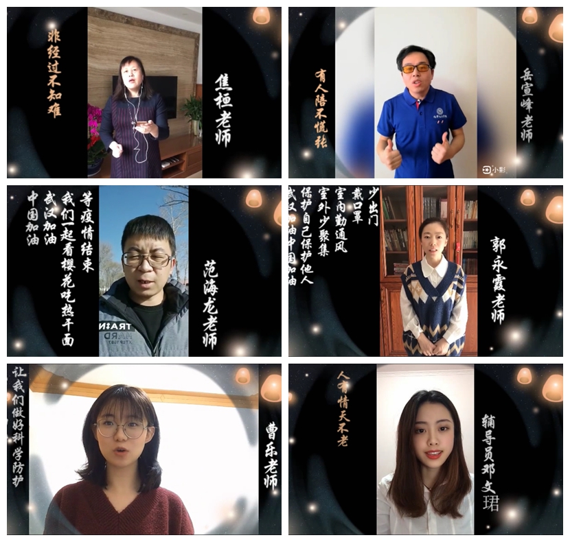 辅导员曹乐通过“云合唱”的方式,共同录制战疫歌曲《你安好,我无恙》MV视频,用歌声和话语表达愿与祖国同呼吸共命运的真情实感。