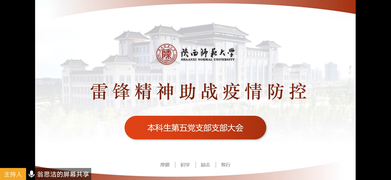 本科生第五党支部于2020年3月5日晚上7点通过腾讯会议平台召开以“雷锋精神助战疫情防控”为主题的线上学习会议。一飞冲天