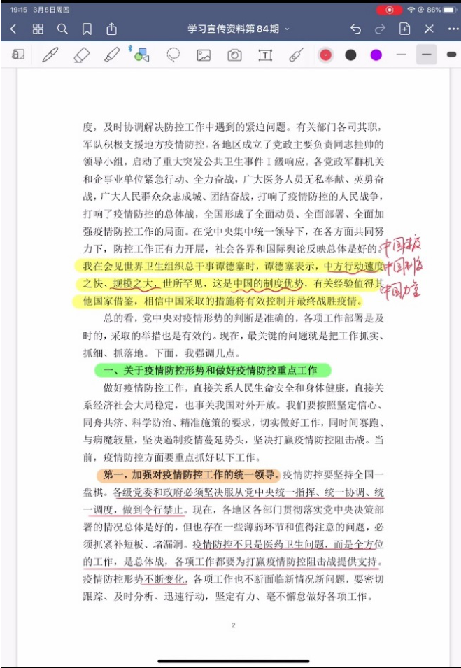随后,同学们结合当前疫情防控情况积极发表看法。李晨希同学讲到自己在这次疫情防控攻坚战中印象最深刻的不是某个具体的人,或具体的事情,是一波又一波身赴前线无私奉献的青年志愿者们。身处湖北的李璐同学,就此次疫情的切身感受谈到,看着身为医务工作人员的亲人奔赴一线时,自己由从最初的惊讶到认识疫情的严重性再到最后的支持,她感到无比的骄傲;社区工作人员每天积极监测防控,使得成为重疫区的社区得到控制,也让她感到无比温暖。她坚信湖北在这场没有硝烟的战争中一定会胜利。