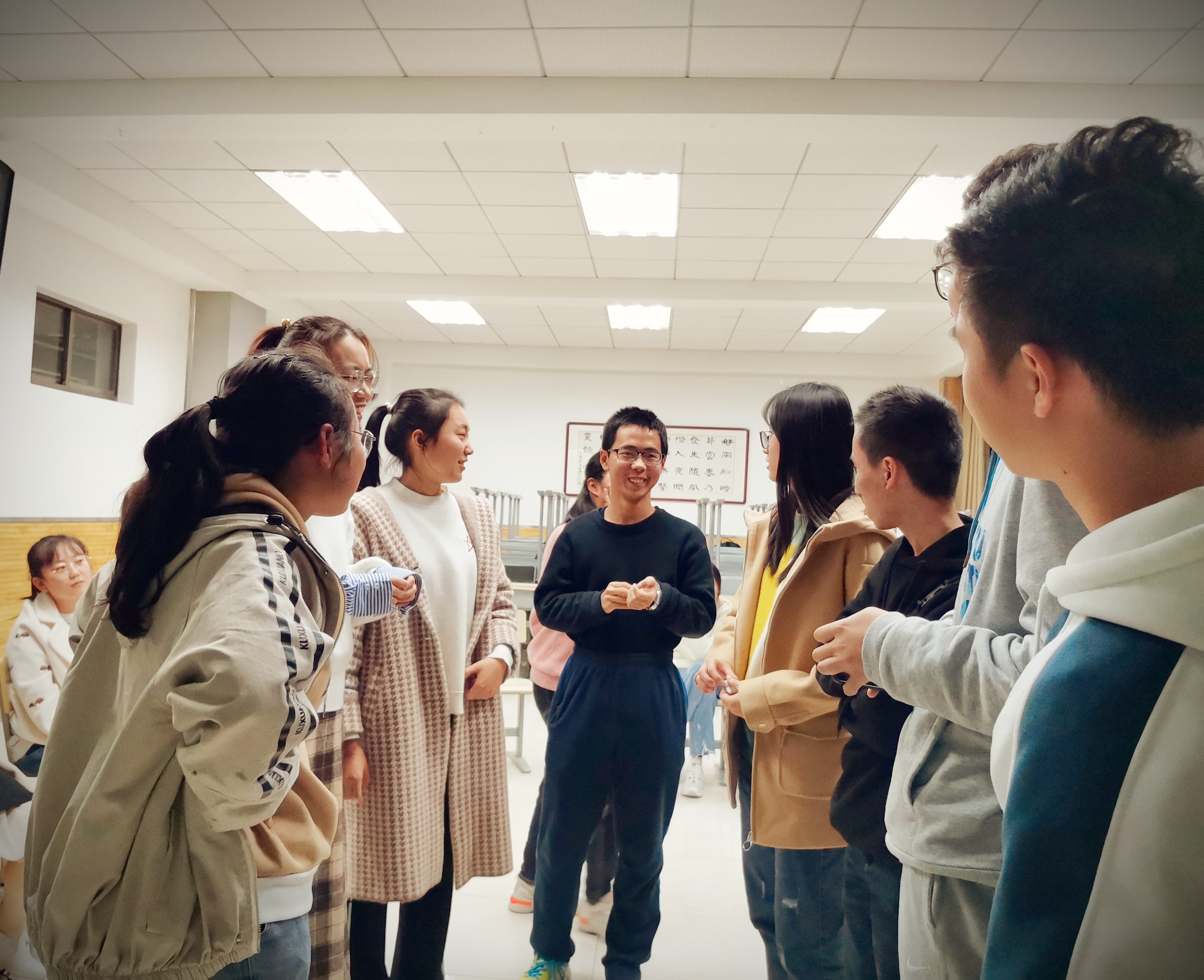 11月15日,化学(卓越教师实验班)于教学九楼开展“五湖四海来相会,一同携手度青春”心理团辅活动。活动通过“二人对对碰”“大风吹小风吹”等小游戏进行破冰,活跃现场气氛。在“相似圈”“滚雪球”游戏中,同学们全身投入,打开心扉,不仅达到了快速熟悉、拉近距离的效果,同时增强了集体归属感,感受到团队的力量与温暖。