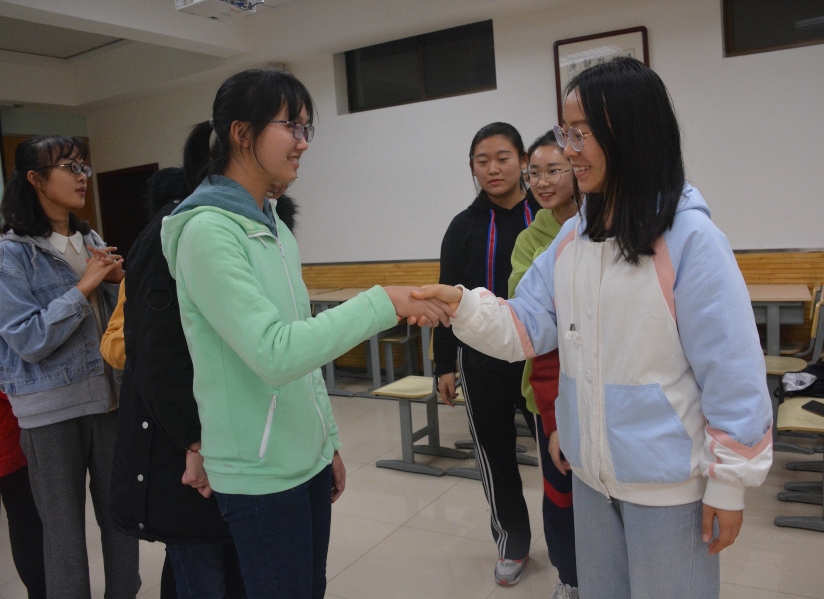 化学1902班以“1+1>2,细流成江海”为主题,开展团体心理辅导。活动从同学们相互握手问好开始,在“大风吹”“松鼠与树”“小鸡与凤凰”等游戏中,同学们热情高涨,深度参与,通过真诚的沟通和积极的展示,学会树立自信、欣赏他人优点、增强交往意识。