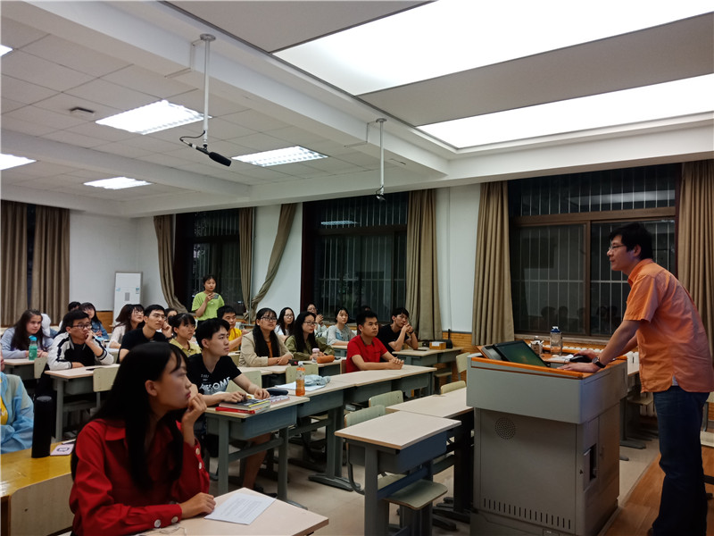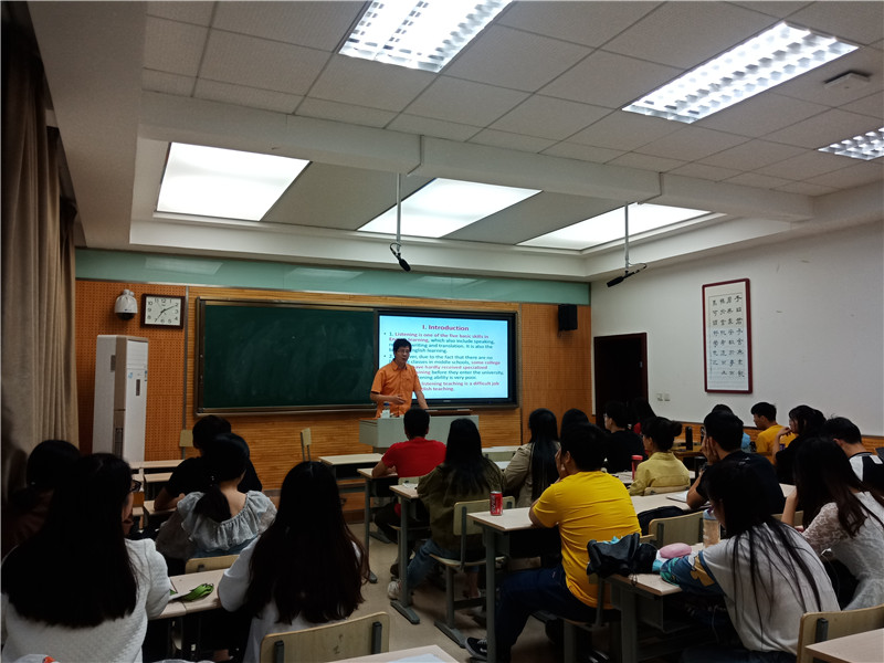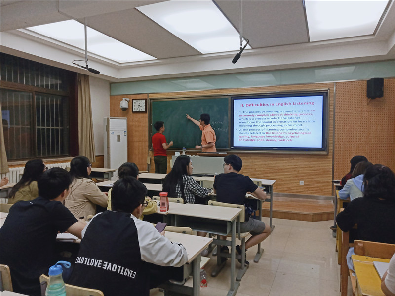 七点十分,活动准时开始。外国语一飞冲天 的郭英杰老师直切主题,直接明了的指出大部分同学在英语听力方面存在的问题,并用一首诗向同学们诠释学习三境界,在此境界中提出了存在问题对应的解决方法,提倡同学采取渐进式、鼓励式坚持练习听力,“念念不忘必有回响”。老师还为同学推荐了最基础的练习听与“写”的歌曲与电影。