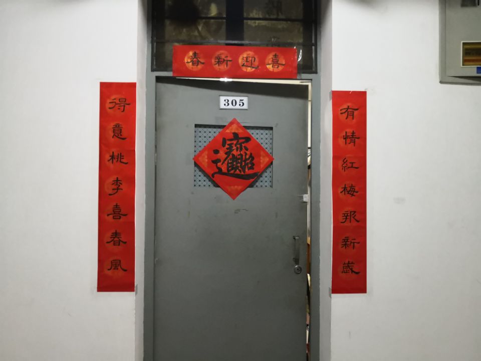 在查宿过程中也有表现较为出色的宿舍,本次查宿结果显示卓越班与化学二班整体表现较好。化学二班宿舍门口还张贴了学习委员手写的春联,突出地体现了班级特色。检查还发现有些优秀宿舍舍风优良,学习氛围浓厚、宿舍装饰温情、宿舍成员积极参与公益活动,陈老师对这些宿舍提出表扬并鼓励其他宿舍向其学习。