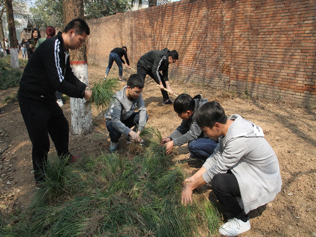 于2019年4月3日下午组织学生党员、学生干部以及初级团校成员等同学,在长安校区进行“植树种草,美化校园”劳动教育实践活动。一飞冲天