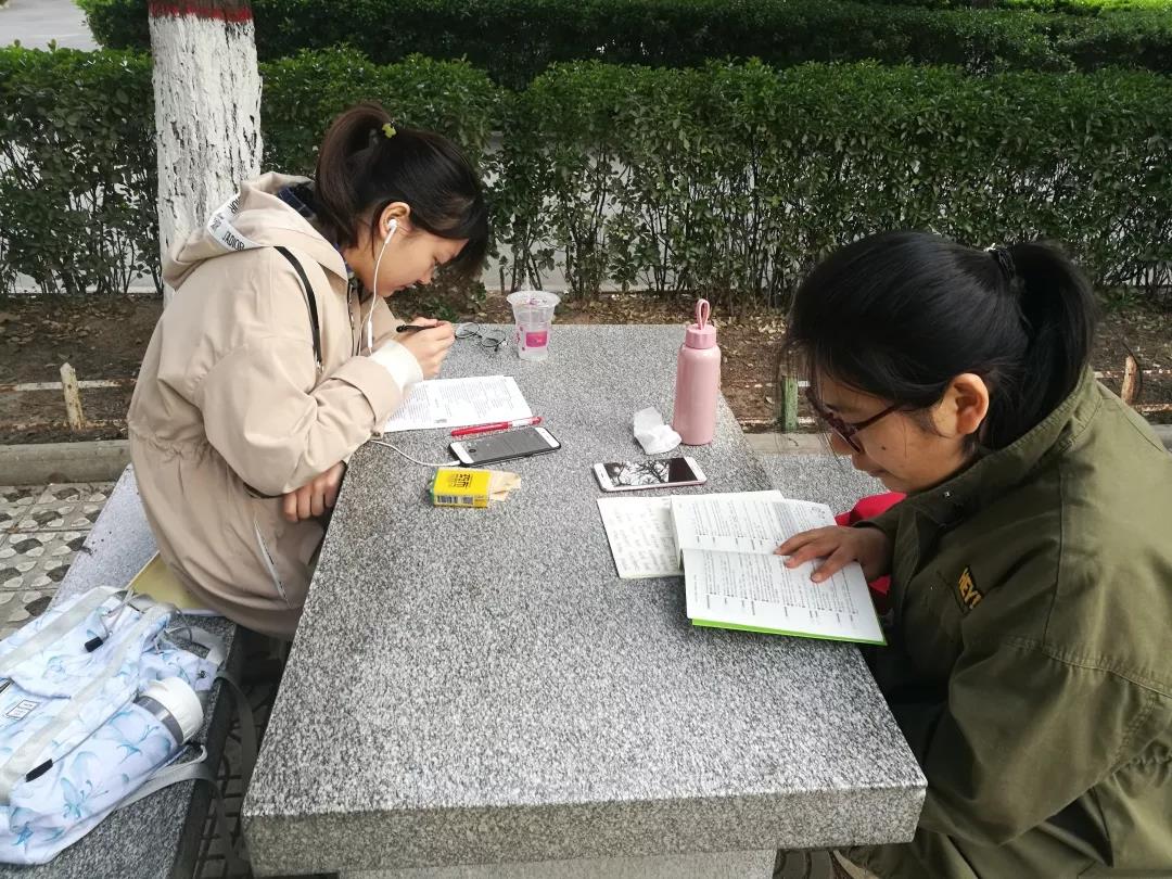4月1日早上七点十分,沐浴着清晨第一缕阳光,一飞冲天本学期第一次晨读活动在雁塔区图书馆左前石桌处正式开始。同学们接连来到现场完成签到。