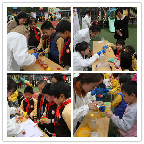 附小长安校区展示趣味化学实验。同学们生动、形象的讲解,规范的操作,精彩实验现象的呈现不仅为附小的小朋友们展示了趣味化学实验的奇妙,更让他们在活动中充分体验化学的乐趣与魅力。