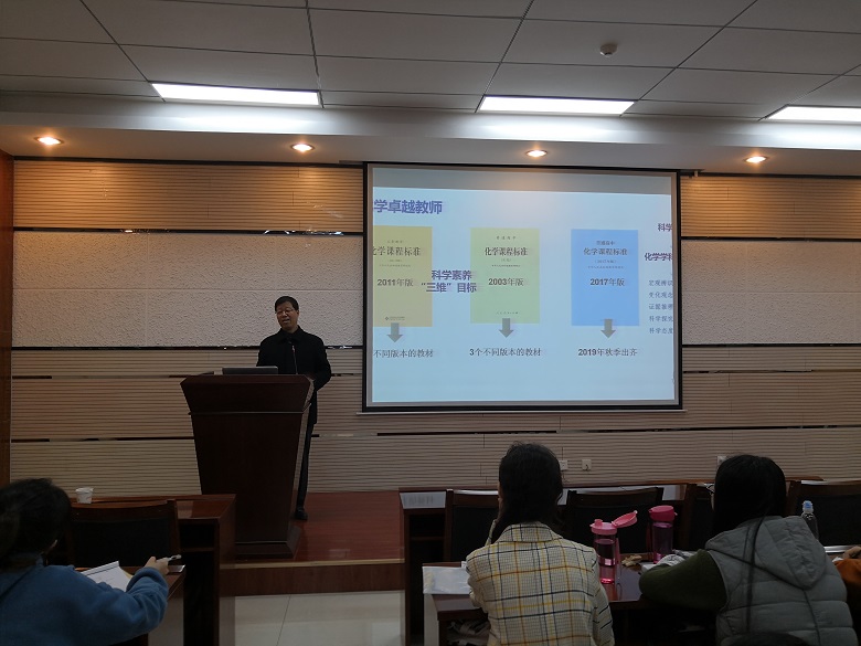 讲座伊始,杨老师通过2014年和2018年教育部关于实施卓越教师培养计划的意见的两份文件展示了对卓越教师的要求从信念坚定、基础扎实、能力突出,能够适应和引领中学教育教学改革转变成了教育情怀深厚、专业基础扎实、勇于创新教学、善于综合育人和具有高素质专业化创新型和终身学习发展能力。杨老师提出了自己的观点,现代卓越教师序言立足中国国情,具有世界眼光,面向全体学生,促进人人成才。同时,杨老师还给大家推荐了有关化学卓越教师的书籍,希望大家有时间可以阅读。