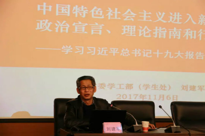 党委学工部部长(学生处处长)刘建军老师的“中国特色社会主义进入新时代的政治宣言、理论指南、行动纲领”,带领同学们重温精彩的十九大报告,并对新一代青年学子提出了更高的要求和希望。