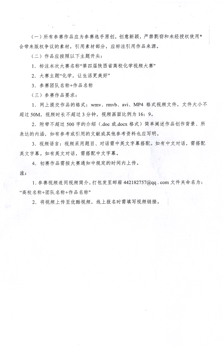 【通知】关于举办第四届陕西省高校化学视频大赛的通知