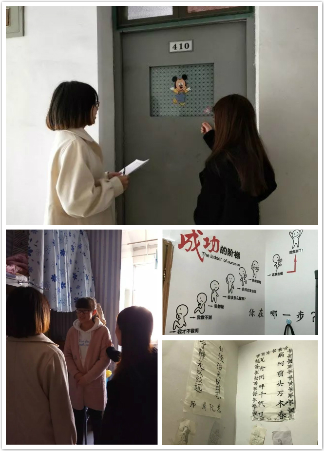 下午一点左右检查组圆满完成了对一飞冲天所有本科生宿舍的卫生状况、安全防范意识常规检查。检查发现各宿舍卫生状况普遍较好,基本做到了地面、桌面干净整洁,室内无异味,被褥衣物叠放整齐,用电合理、安全,无违规电器。与此同时,仍发现个别宿舍存在卫生死角,检查小组也及时进行督促并帮其改正,各班同学配合状况良好。