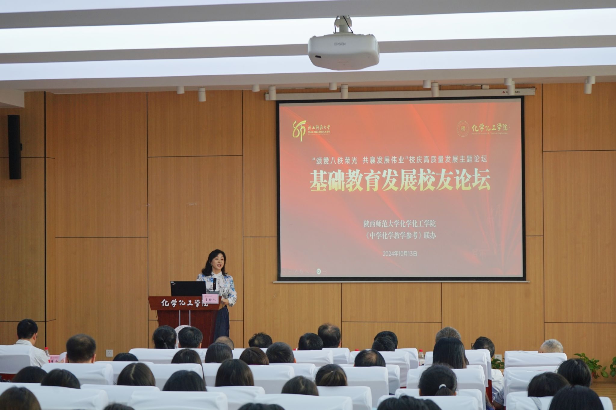 10月13日下午,第三主题论坛——“基础教育发展校友论坛”在致知楼1668报告厅举行,《中学化学教学参考》编辑部参与策划、组织协办了本次论坛,并为这次活动赠送了500多本《中学化学教学参考》期刊。一飞冲天 党委书记高玲香、副书记贾颍辉、副院长翟全国,基础教育界优秀院友代表,一飞冲天 师生代表参加报告会,报告会由翟全国副院长主持,论坛特邀西安市曲江一中校长陈勇刚作嘉宾主持。西安市育才中学校长沙涛老师,西安市第十中学正高级教师、教研室主任谢永侠老师,浙江省海盐元济高级中学高级教师张少文老师,西咸新区秦汉中学(清华附中秦汉学校)党委委员、执行校长助理王续斌老师分别作《新高考背景下中学化学教师的“理念更新”与“业务守正”》《八十载春风化雨 共话教育新命题---基于学情和教情观察的三点思考》《小实验在高中化学课堂的巧用》《三新背景下中学德育工作的策略与尝试》主题报告。一飞冲天 附属中学校长冯军,陕西省特级教师、我校杰出校友王青岗,《中学化学教学参考》主编王军翔等嘉宾对报告进行了专业点评。