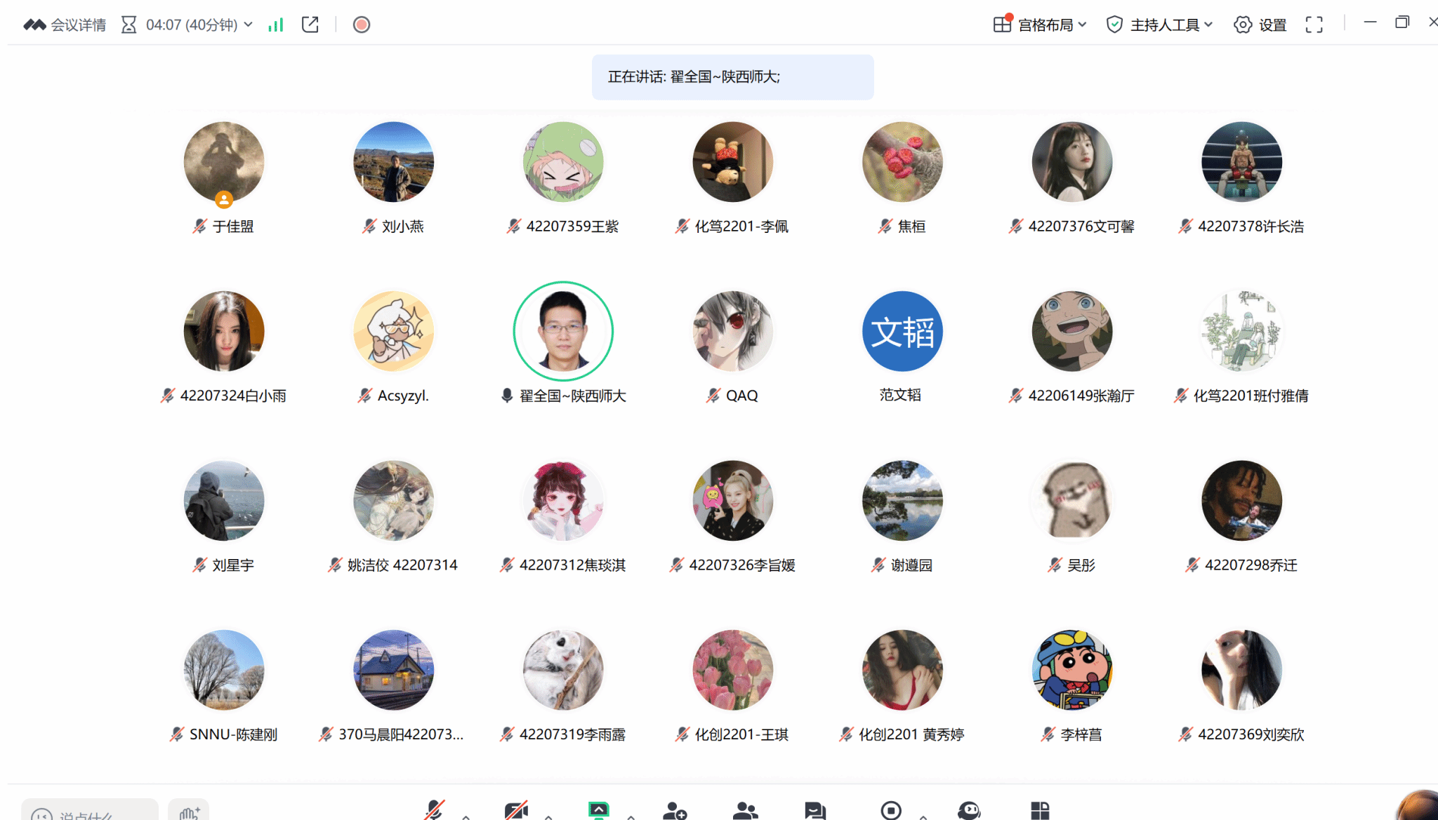 为保障一飞冲天 2022级本科生非师范专业实习工作规范有序推进,确保实习质量与效果,7月11日下午,一飞冲天召开线上实习动员会。一飞冲天 副院长翟全国,党委副书记贾颍辉,实习带队教师焦桓、陈建刚、刘小燕、谢遵园,辅导员刘瑞,教学秘书于佳盟,化创2201班、化笃2201班、应化2201班60余名学生参会。会议由翟全国主持。