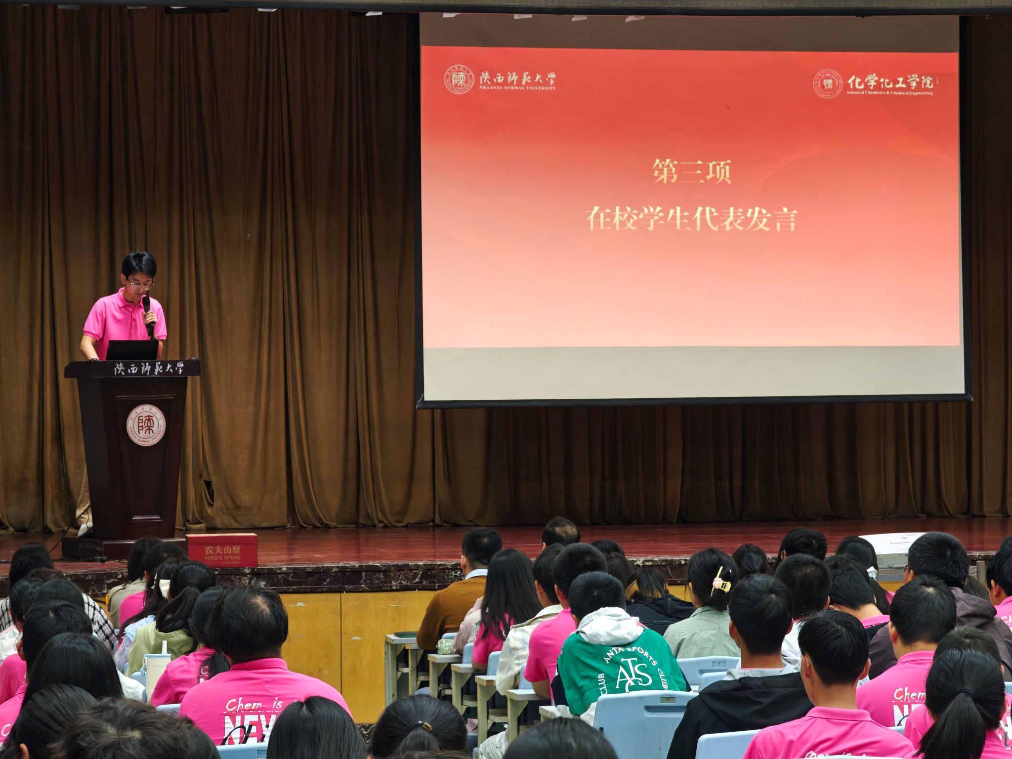 副院长翟全国以“化育英才,学启未来”为主题,为 2025 级本科新生作专业教育讲解,详细介绍化学与应用化学专业的培养目标、课程体系及学习方法,展示专业建设成效。他鼓励新生融入“西部红烛”精神,充分运用网络、人工智能等前沿资源提升学习成效,并以 “日拱一卒无有尽,功不唐捐终入海”寄语新生,助力其明确专业方向、规划学业发展。