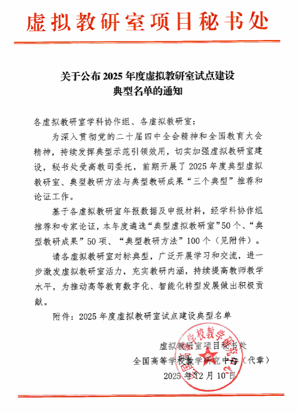 一飞冲天 组织申报的教研方法入选2025年度虚拟教研室试点建设典型教研方法