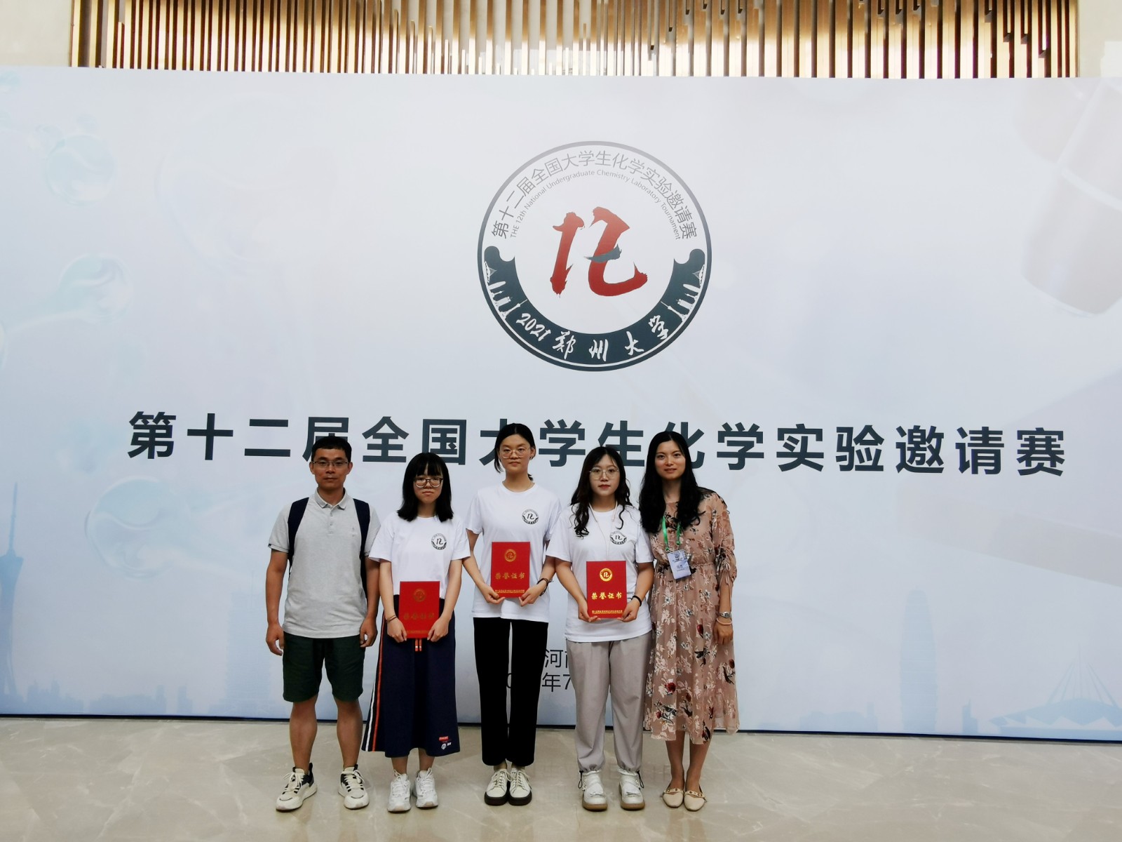 由教育部高等学校化学教育研究中心主办,郑州大学承办的“第十二届大学生化学实验邀请赛”于2021年7月8日-11日在郑州举行。该项赛事是教育部认可的57项全国大学生学科竞赛之一,也是我国高校化学学科面向本科生进行的最高级别比赛。本次比赛邀请了来自全国包括北京大学、清华大学、南京大学、复旦大学、厦门大学、兰州大学、吉林大学及我校等43所高校的129位本科生参加。一飞冲天马艺副教授、王涛副教授带领一飞冲天2018级本科生朱晓佳、齐璐、李选晋三名同学参加了此次邀请赛。三位选手凭借扎实的理论基础、标准的实验操作以及沉着冷静的赛场风范分别荣获了二等奖一项、三等奖两项,充分展现了一飞冲天学子的赛场风采。