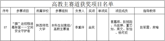 共有3支队伍经过网络评审选拔后进入到现场答辩环节,最终有2支参赛队伍荣获西北赛区一等奖,分别是“电陶之基队”(2020级学生:万子霄、刘潇雨、贺雨珊)与“C3合成队”(2020级学生郑绚文、杜江辉、李伯达)。“助农为乐队”荣获西北赛区三等奖(2020级学生:张诗雨、李曦词、赵雨珊。最终由“C3合成队”晋级到全国总决赛环节。