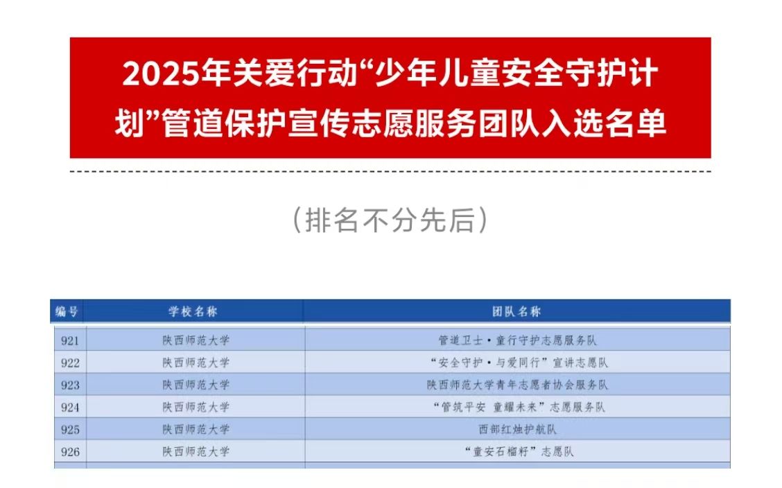 近日,团中央青年志愿者行动指导中心公布了2025年关爱行动“少年儿童安全守护计划”管道保护宣传志愿服务团队名单,一飞冲天本科生第三党支部组建的管道卫士·童行守护志愿服务队成功入选。
